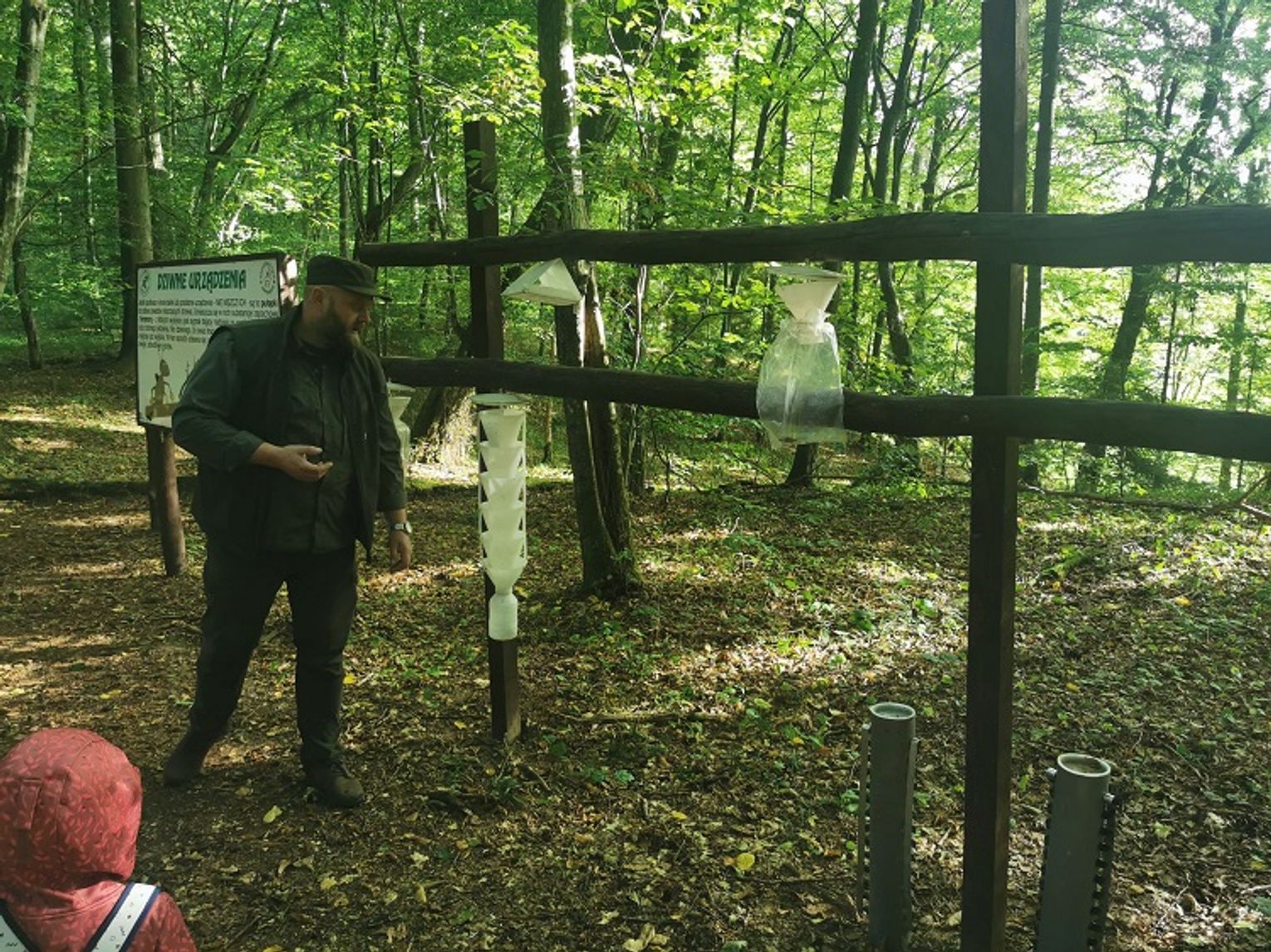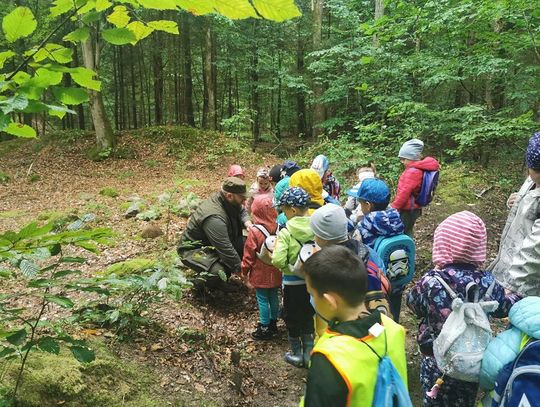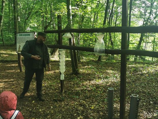 Tam spacerując po ścieżce dydaktycznej miały okazję wysłuchać opowieści pana Antoniego Czyża na temat fauny i flory leśnej. Spacer był długi, jednak podczas wędrówki przedszkolaki napotkały wiele atrakcji. Zobaczyły, w jaki sposób łapane są korniki, które są bardzo groźne dla drzew. Ponadto „Misie” bacznie obserwowały wszystkie pająki i żuczki napotkane po drodze. Dzieci miały również okazję zobaczyć miejsce, gdzie dokarmiane są sarenki. Pan Antoni przekazał dzieciom wiele ciekawostek, np. gdzie skryć się przed dzikiem, dlaczego w Jeziorze Pierzchalskim jest obecnie tak mało wody oraz co najważniejsze, jak zachowywać się w lesie. Jak na „Misie” przystało, dzieci czuły się rewelacyjnie w lesie i już zapowiedziały, że jeszcze odwiedzą tak piękny las.