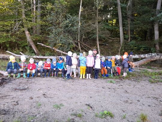 W poszukiwaniu oznak jesieni dzieci z grupy "Pszczółki" pojechały na wycieczkę do lasu do Nadleśnictwa Zaporowo. Podczas spotkania z leśniczym - panem Antonim Czyżem, przedszkolaki dowiedziały się, że drzewa dzielimy na liściaste i iglaste, jakie zwierzęta mieszkają w lesie oraz jak las zmienia się jesienią. Wiele radości sprawiły wszystkim wędrówki po leśnych ścieżkach i brzegiem Jeziora Pierzchalskiego, a do kącika przyrodniczego zebraliśmy kolorowe liście, szyszki a nawet grzyby. To była pierwsza wycieczka "Pszczółek " do lasu, ale na pewno nie ostatnia.