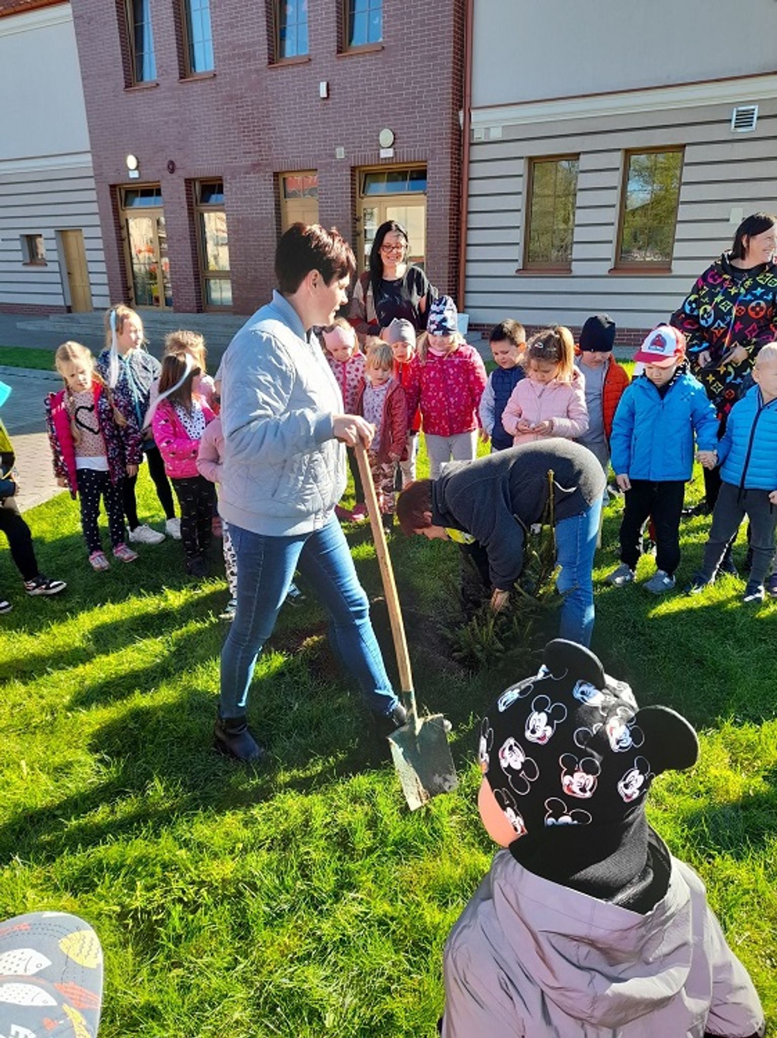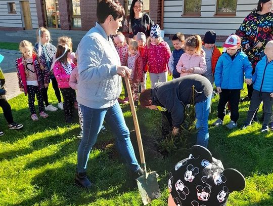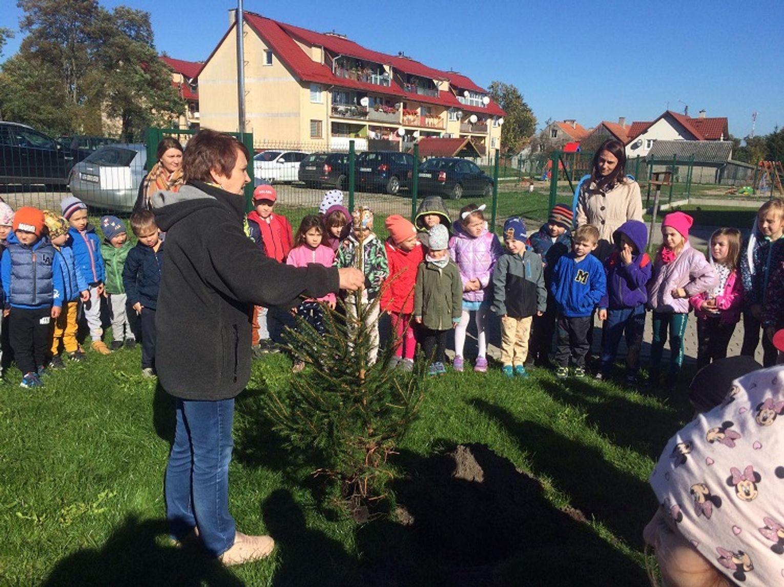 We wszystkich grupach odbyły się zajęcia związane z tematyką drzew. Dzieci poznały budowę drzewa oraz etapy jego wzrastania. Dowiedziały się, jak wielkie znaczenie mają drzewa dla człowieka, zwierząt i przyrody - w tym dla czystości powietrza. Przedszkolaki przypomniały sobie o konieczności dbania o przyrodę. Wysłuchały także pełnego humoru wiersza naszego patrona, Jana Brzechwy, pt.: „Drzewa”. Podsumowaniem akcji było posadzenie przed przedszkolem „Świerku Michasia", który został naszym nowym przyjecielem.