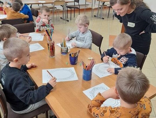 Głównym celem wyjścia była realizacja jednego z zadań Międzynarodowego Projektu Czytelniczego "Magiczna moc bajek", które zakłada m.in. promowanie wśród dzieci czytania bajek i baśni jako sposobu na ich rozwój. Pani Katarzyna Mościcka-Pisarska przeczytała dzieciom bajkę pt. "Nowe szaty cesarza". Następnie sprawdziła uważność dzieci podczas słuchania bajki, zadając im liczne pytania dotyczące treści przeczytanego tekstu. "Pszczółki" świetnie poradziły sobie ze wszystkimi pytaniami. Na koniec pani Kasia zaprosiła dzieci do wykonania rysunku pt. "Co chciałbym zobaczyć w magicznym lustrze?". Dzieci rysując przeróżne rzeczy tj. tęczę, kwiaty, liście, samochody, domy pokazały, że ich wyobraźnia nie ma granic. Dziękujemy Pani Kasi Mościckiej-Pisarskiej za zaangażowanie i miło spędzony czas.