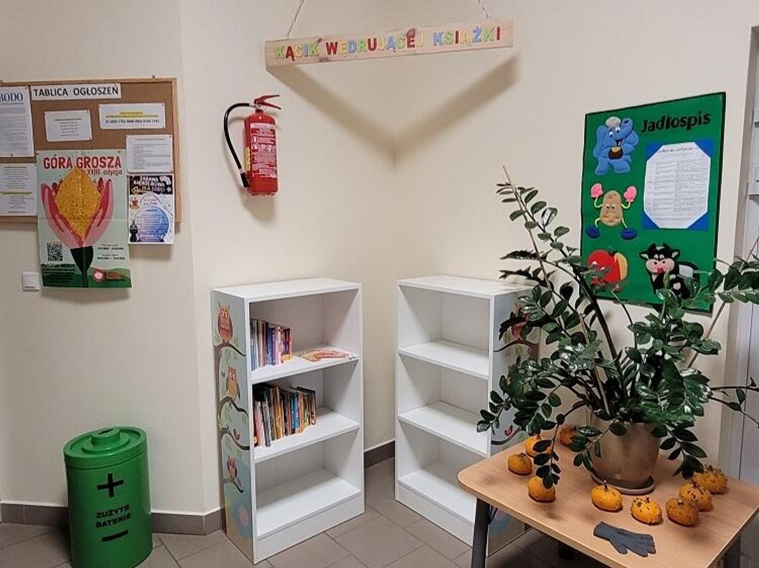 Regały oraz książki zostały zakupione ze środków pozyskanych w ramach Priorytetu 3 "Narodowego Programu Rozwoju Czytelnictwa 2.0 na lata 2021-2025". Ideą "Kącika Wędrującej Książki" jest jednak krążenie książek, jeśli macie więc Państwo w domu książki dla dzieci, po które Wasze pociechy już nie sięgają, przynieście je do naszego kącika i pozwólcie komuś innemu czerpać radość z nieznanej mu literatury.