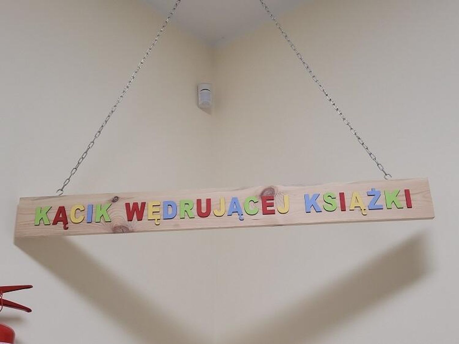 Dziękujemy pani Arletcie Szatkowskiej, która była pomysłodawczynią utworzenia "Kącika Wędrującej Książki" w naszej placówce, oraz mężowi pani Arletty - panu Wojciechowi, który wykonał szyld z nazwą kącika.
