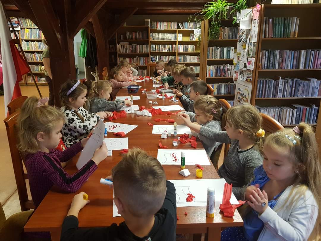 Listopad to miesiąc, w którym nie mogło zabraknąć akcentu patriotycznego. W zajęciach bibliotecznych pod tytułem „Polska wierszem malowana” uczestniczyła grupa przedszkolna „Motylki”. Dzieci wysłuchały pięknego wiersza o naszym kraju oraz legendy o elbląskim Piekarczyku. Oczywiście nie zabrakło rozmów o ojczyźnie, symbolach narodowych, trudnych i mądrych pytań o wolności. Jak zwykle dzieci wykonały piękne prace.