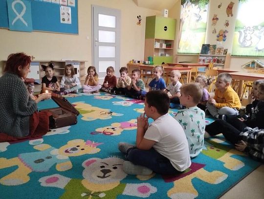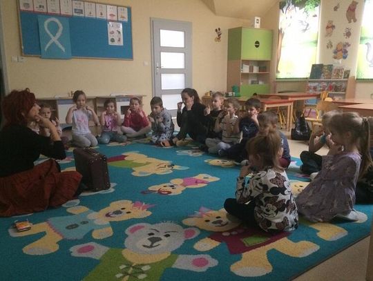 29 listopada przedszkolaki uczestniczyły w warsztatach teatralnych pt.: ,,Abrakadabra, bum, trach, prztyk - co w sobie kryje walizka dziadziusia Leopolda” pod opieką instruktora ,,Teatru 3 walizek”– pani Edyty.