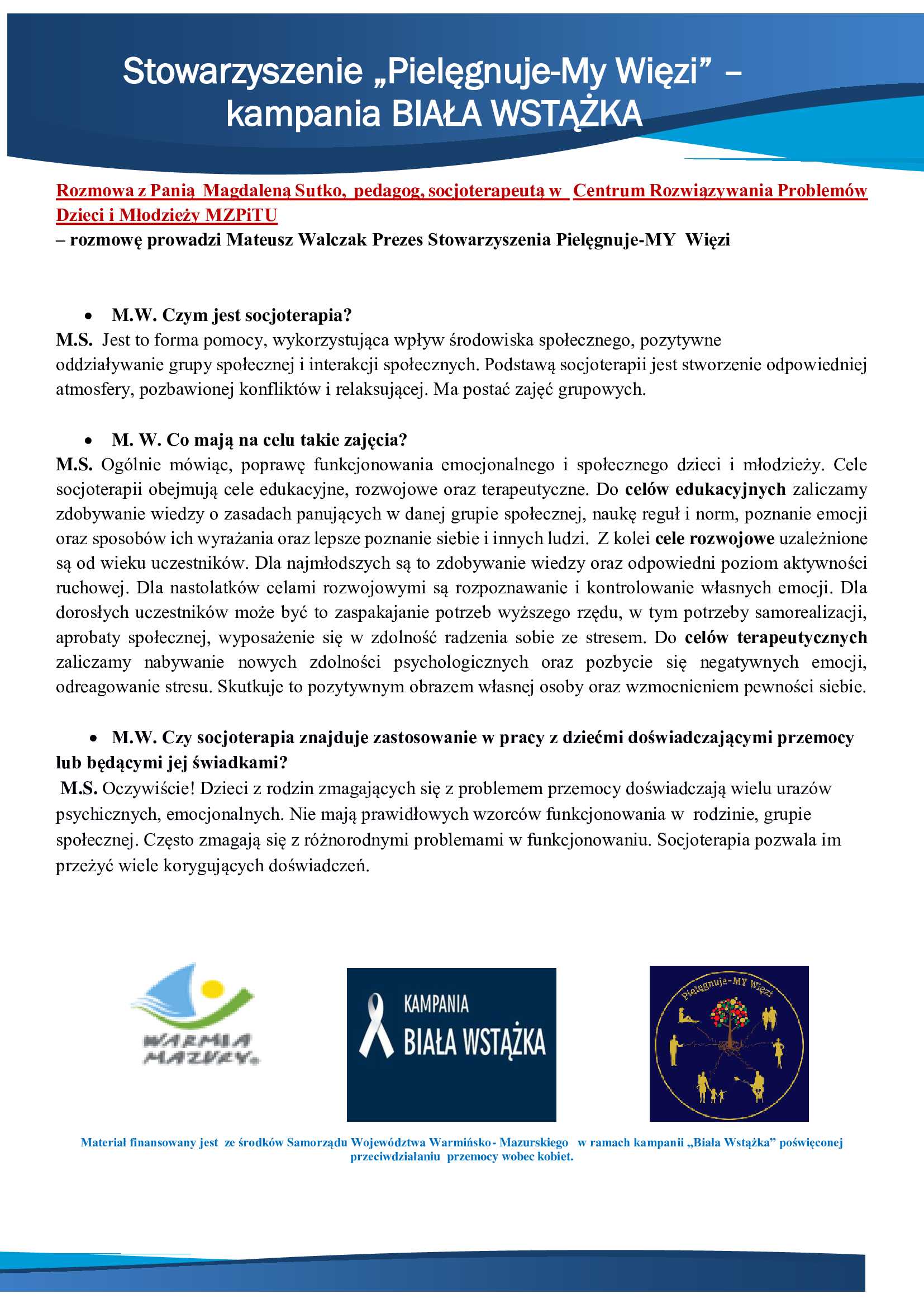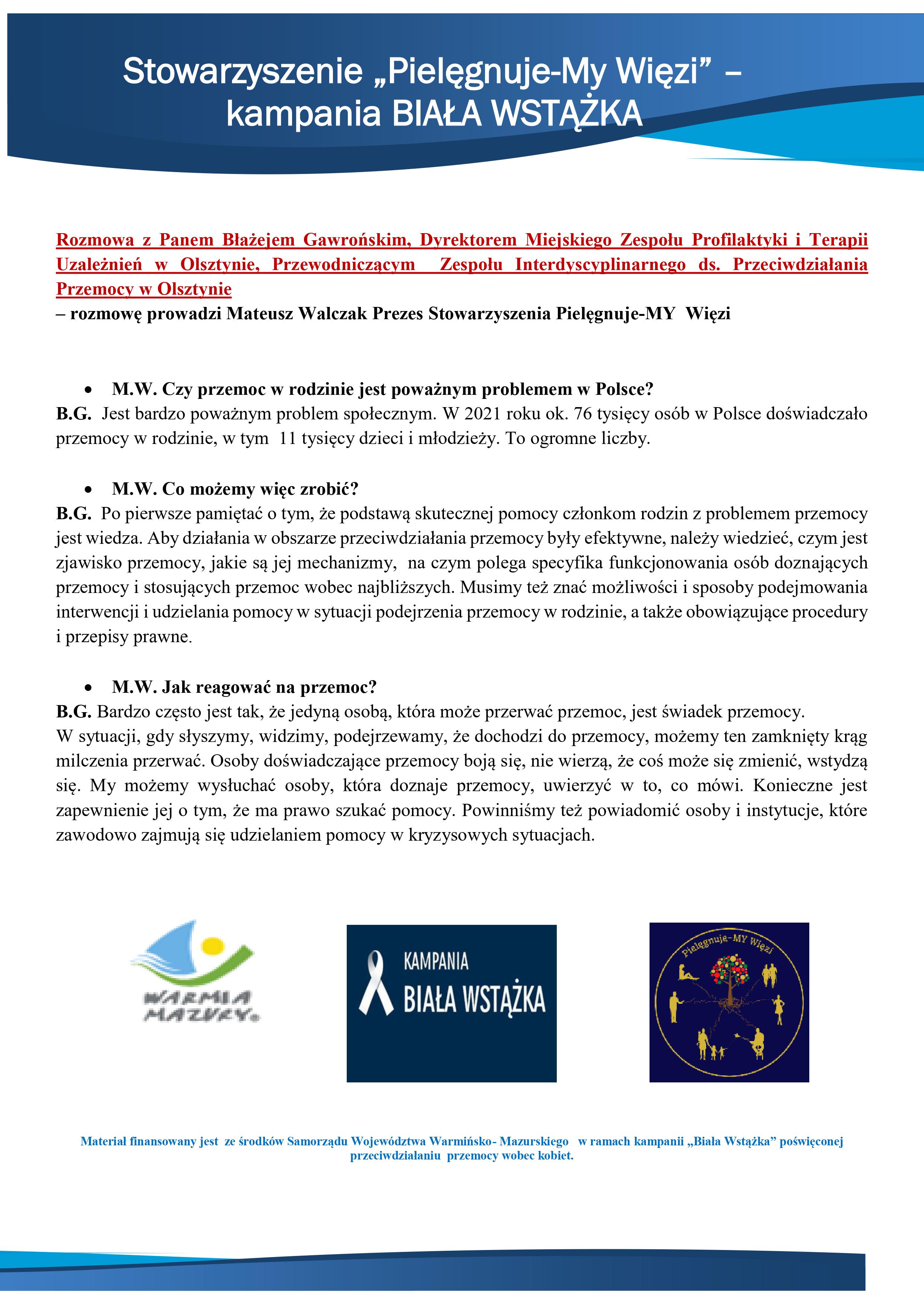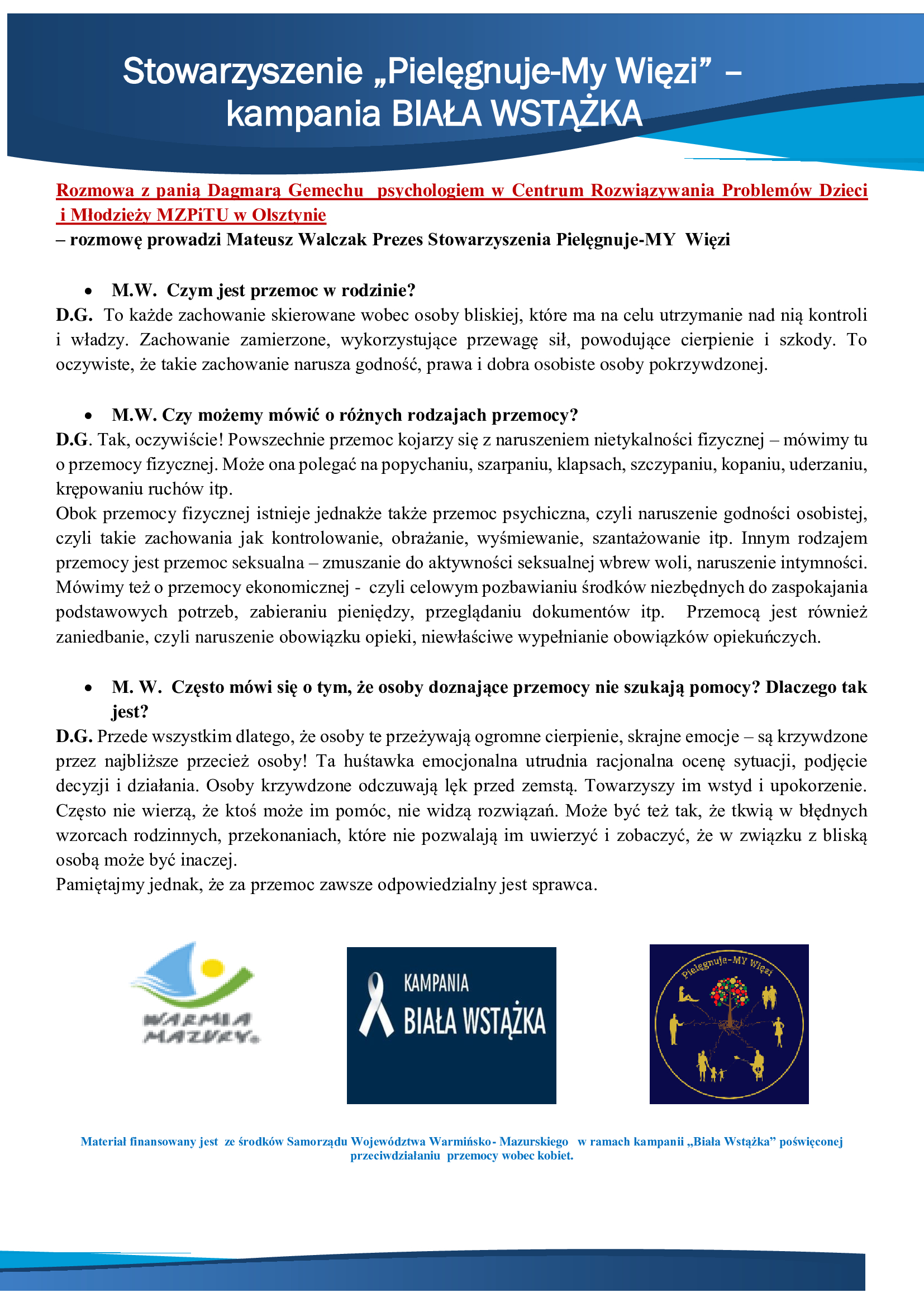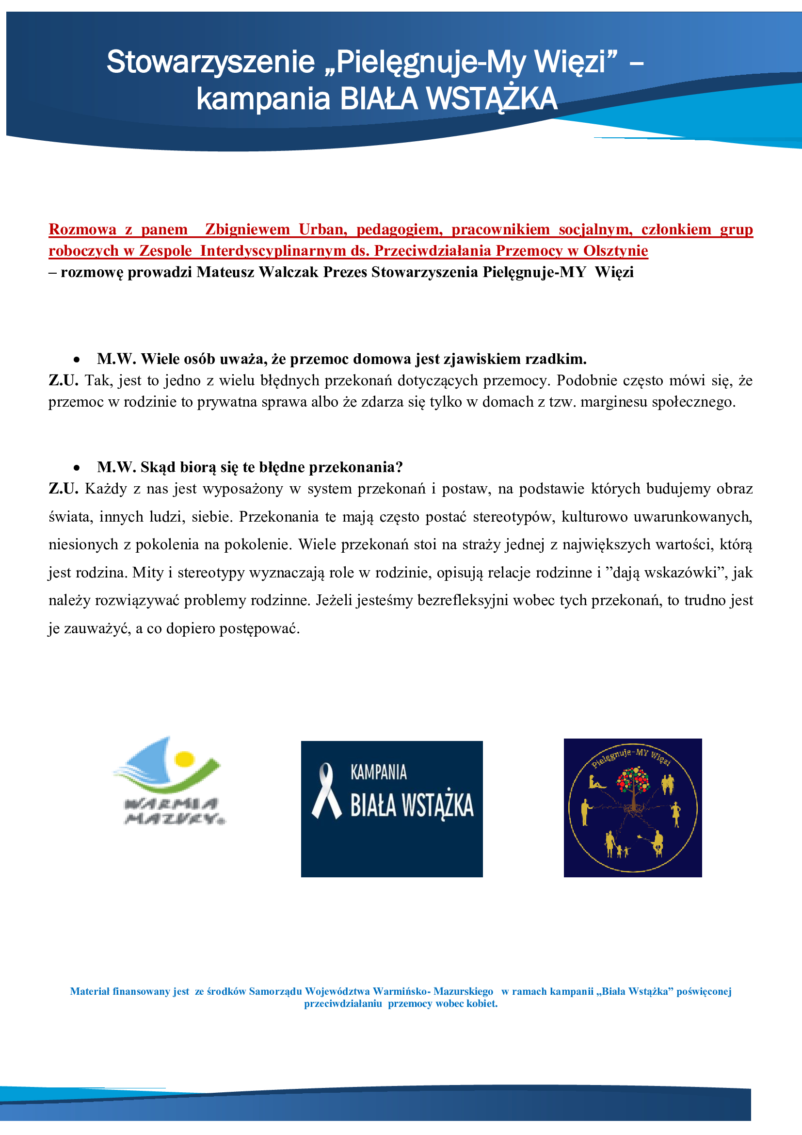 Wywiady ze specjalistami pracującymi w obszarze przeciwdziałania przemocy, przeprowadzone w ramach kampanii „Biała Wstążka”