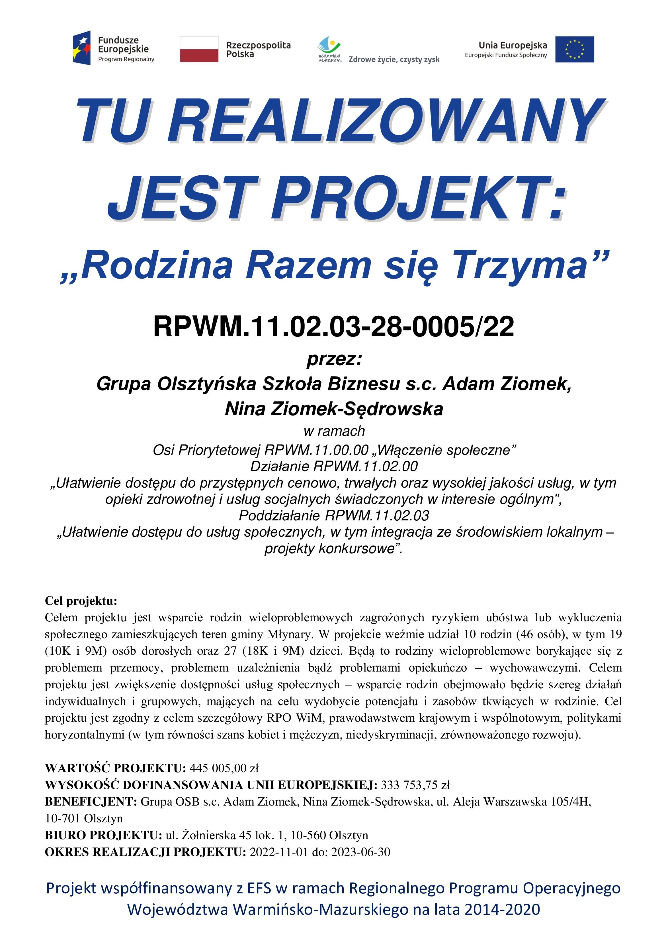 Realizowany Projekt ,,Rodzina Razem sie Trzyma"