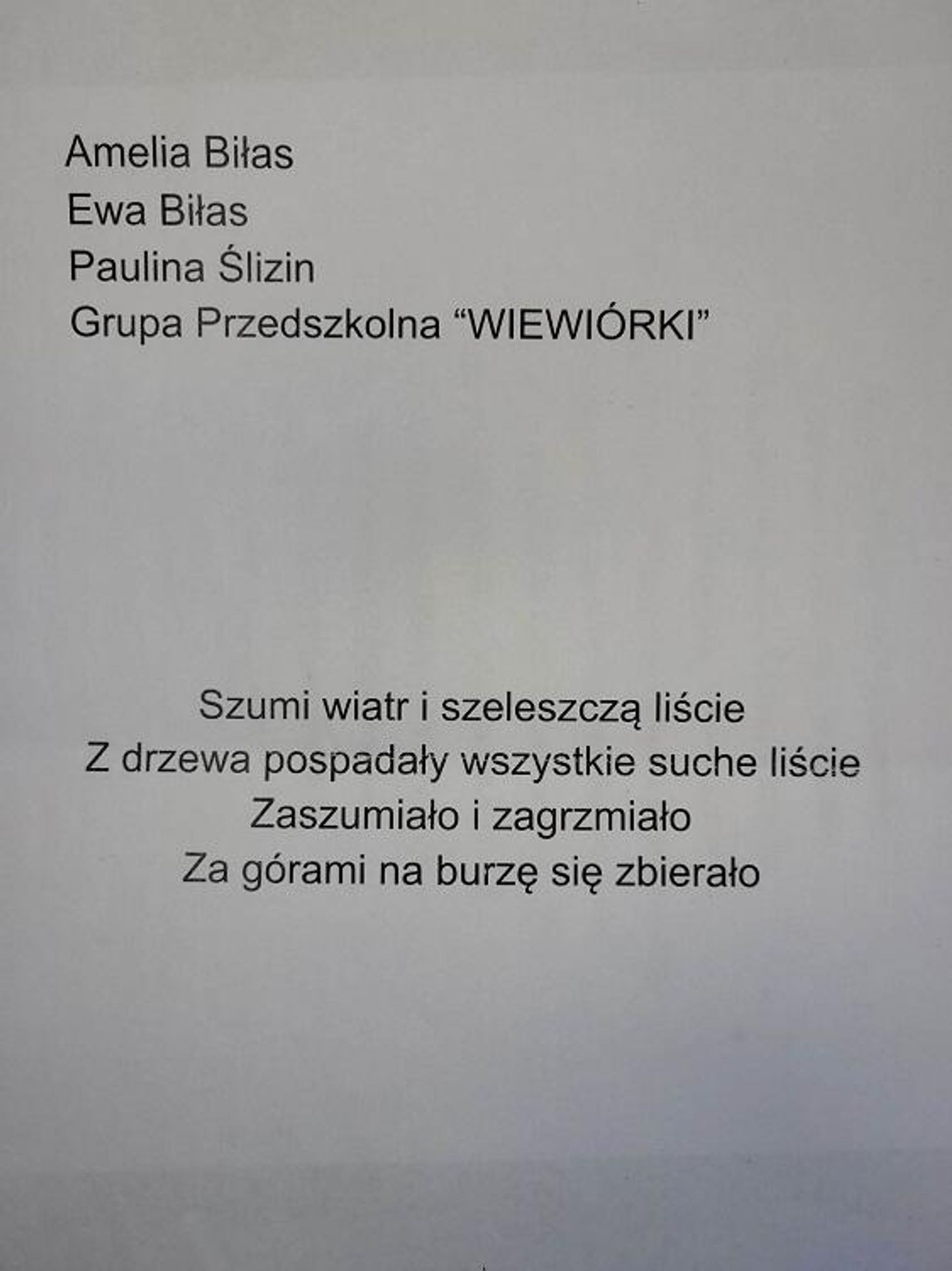 z grupy "Motylki" - Nikodem Grzegorzak z tatą, Aleksandra Kopycińska z tatą, Julian Łesyk z rodzicami, Bartosz Łukaszewicz z mamą, Wiktor Pochodaj z mamą, Sara Szczerbiak z bratem, Lena Tupko z rodzicami;