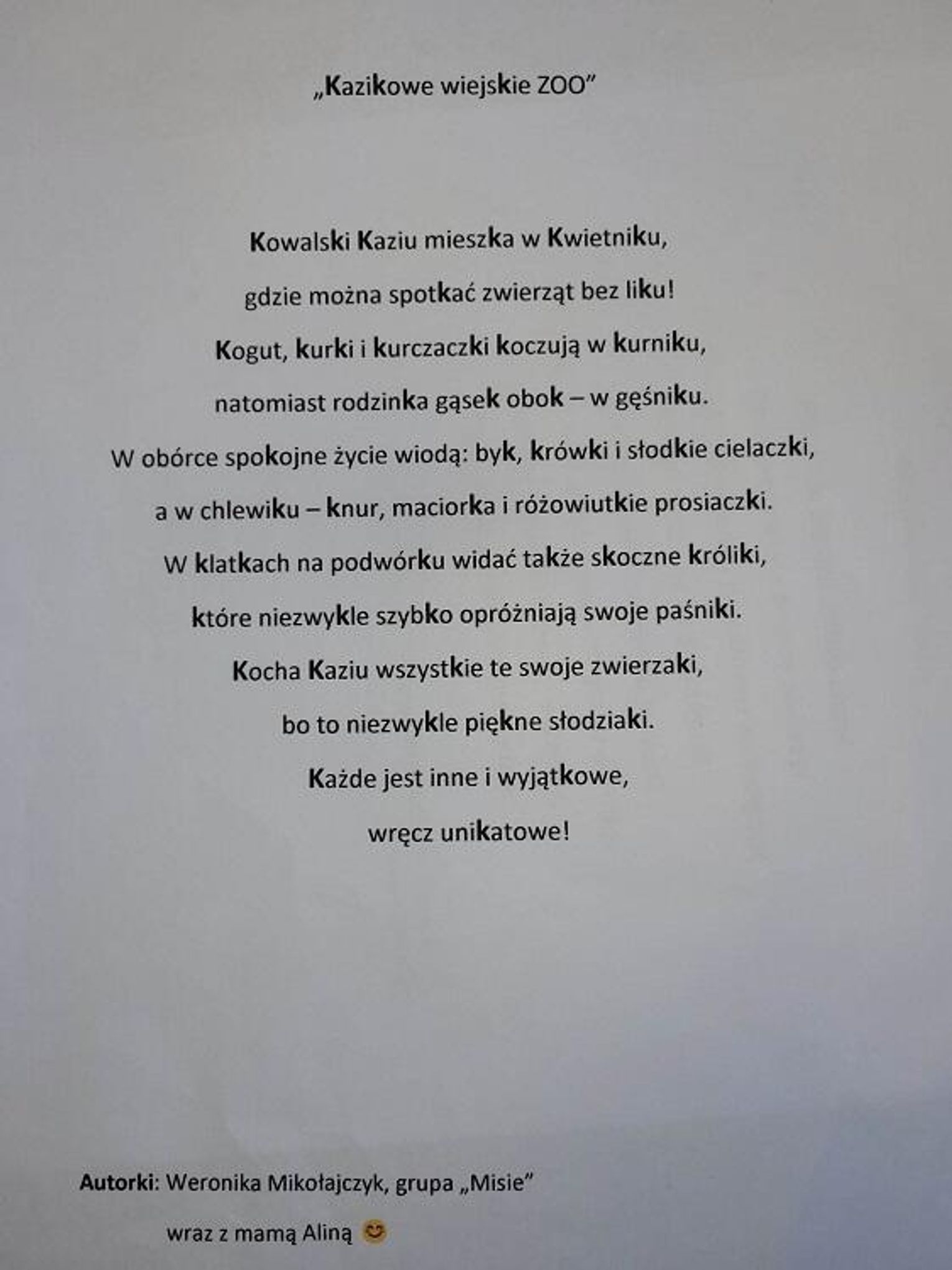 - pomysłowość literacka (tematyka wiersza, humorystyka),