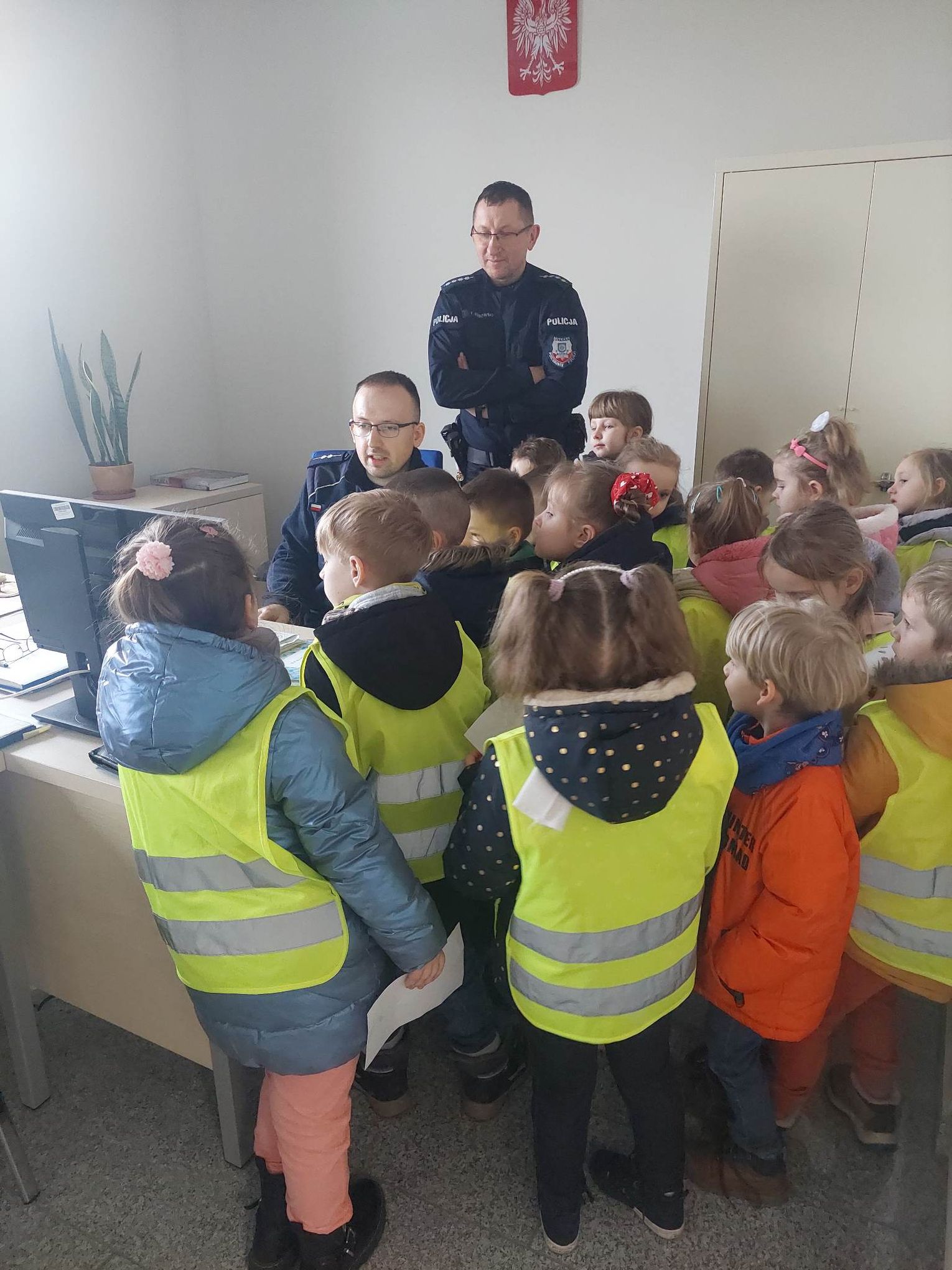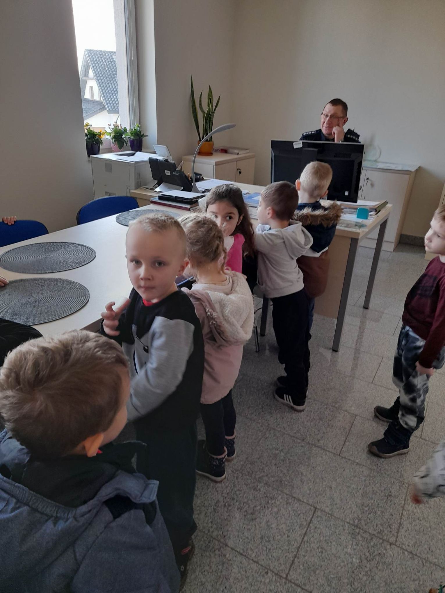 Dwie grupy przedszkolne: "Pszczółki" oraz "Motylki" wybrały się na Posterunek Policji w Młynarach. W środę 15 marca "Motylkom" towarzyszyli asp. szt. Artur Łachmański oraz asp. Tomasz Kirol, a dzień później "Pszczółkom" - asp. szt. Tomasz Rębowski i asp. szt. Zbigniew Dutkiewicz. Przedszkolaki mogły zapoznać się z tajnikami pracy policjanta. Dzieci mogły użyć specjalnej karty do otworzenia drzwi wejściowych, które na co dzień są zamknięte i niedostępne dla zwyczajnego obywatela. Policjanci oprowadzili nas po wszystkich pomieszczeniach, tłumacząc, do czego są one przeznaczone. Przedszkolaki z wielkim zainteresowaniem oglądały ubiór policjanta i wszystkie akcesoria, które są do niego dołączone, m.in. kajdanki, kamizelkę kuloodporną oraz kamizelkę odblaskową. Dzieci miały także okazję odcisnąć swoje odciski palców - Policjanci zaznaczyli, że linie papilarne są wyjątkowe i niepowtarzalne.