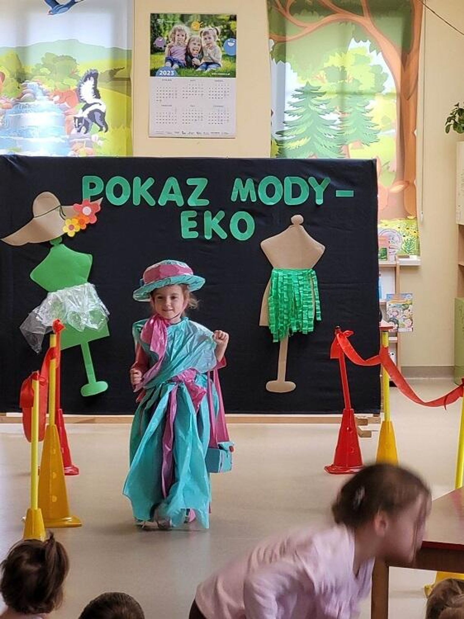 Z tej okazji przed południem przeszliśmy barwnym korowodem wokół młynarskiego rynku, niosąc ze sobą Marzannę symbolizującą panią Zimę, a w południe spotkaliśmy się wszyscy na ekologicznym pokazie mody. Trzeba przyznać, że przygotowane przez dzieci wspólnie z rodzicami stroje zachwyciły nas pomysłowością i oryginalnością.