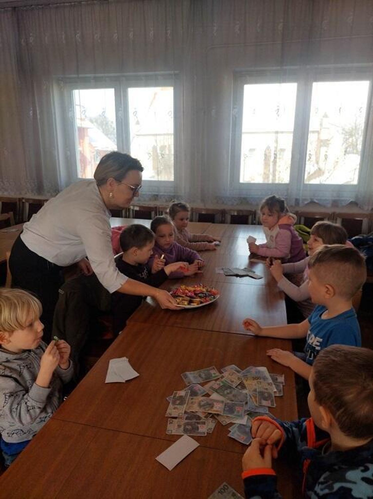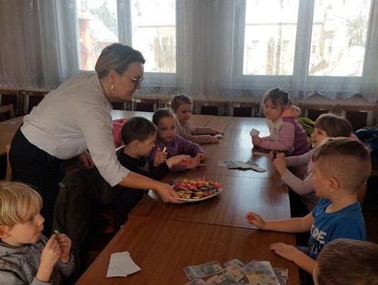 Przedszkolaki zapoznały się ze sposobami oszczędzania i gromadzenia pieniędzy. Wspólnie z pracownikami Banku miały możliwość sprawdzenia autentyczności banknotów. "Motylki" miały również okazję zobaczyć starodawna maszynę do pisania, która była kiedyś używana do tworzenia różnego rodzaju dokumentów bankowych. Pani Agnieszka Grzegorzak, mama Nikosia, zapoznała dzieci z różnego rodzaju banknotami krajowymi i zagranicznymi (złoty, euro, dolar) oraz ze sposobami ich przeliczania (ręczny i maszynowy). Pod koniec spotkania przedszkolaki dowiedziały się, czym jest bankomat oraz bankowość elektroniczna.