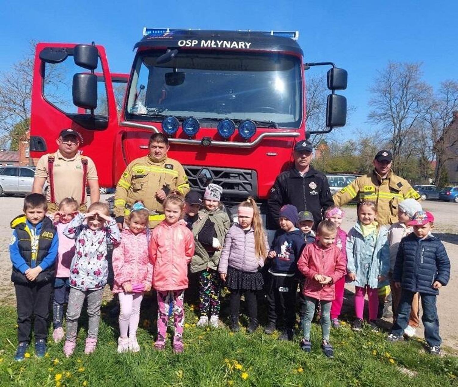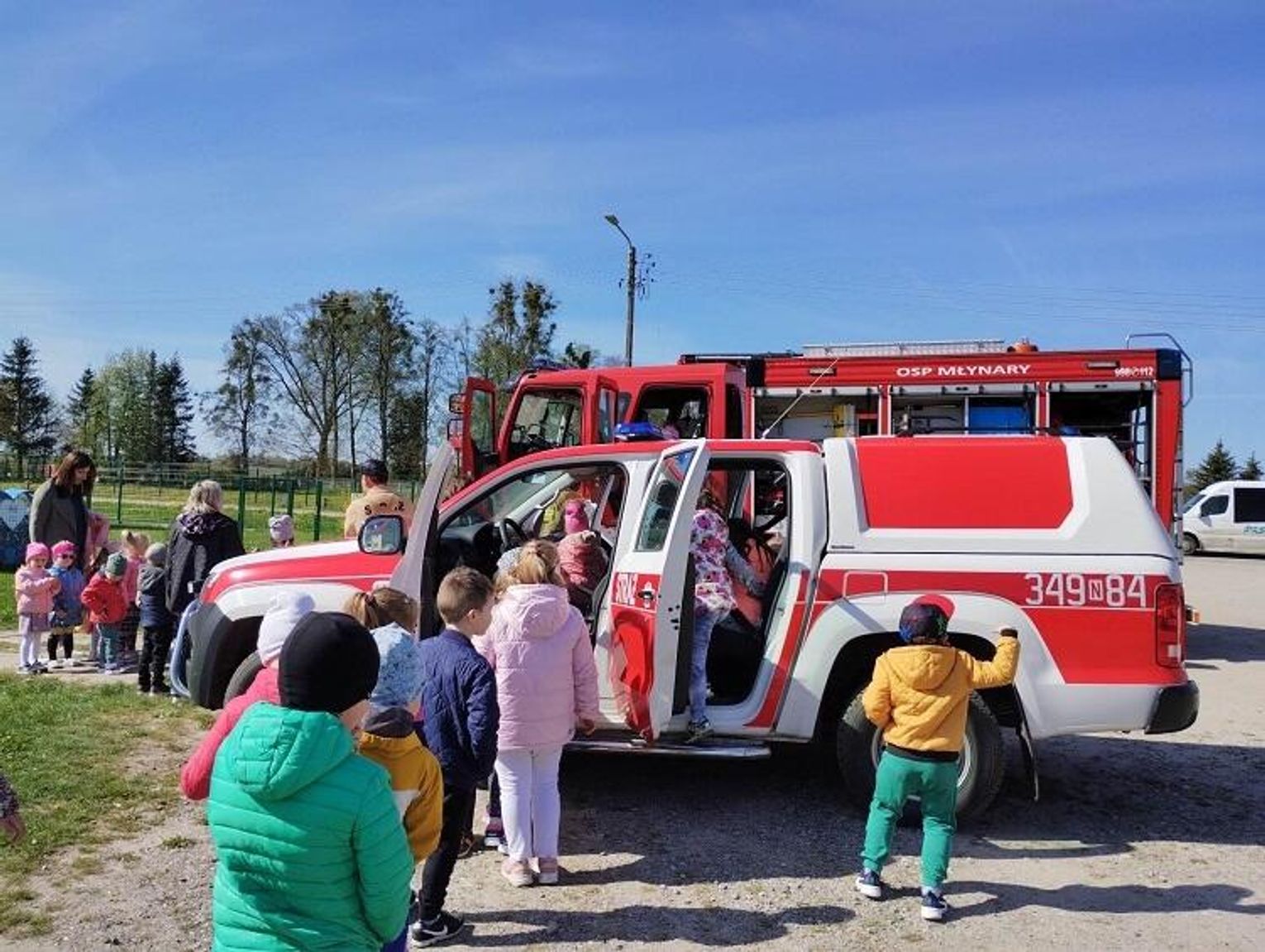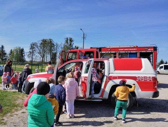 Jak co roku przedszkolaki spotkały się tego dnia ze strażakami z Ochotniczej Straży Pożarnej w Młynarach. Dzieci oglądały wozy strażackie i znajdujący się w nich sprzęt. Mogły poczuć się jak prawdziwi strażacy, zasiadając w wozach i przymierzając strażackie kaski. Jak zawsze duże wrażenie zrobiła na dzieciach głośna syrena, a całe spotkanie sprawiło im dużo radości.
