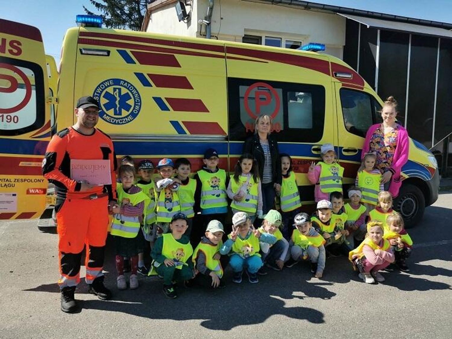 Pan Piotr Kaczyński, tata Ady, przybliżył przedszkolakom zawód ratownika medycznego. Pokazał dzieciom m.in. jak mierzy się puls oraz jak należy opatrywać rany. "Misie" mogły także przyjrzeć się z bliska wnętrzu karetki - największe zainteresowanie budziły sygnały oraz sygnalizacja świetlna.
