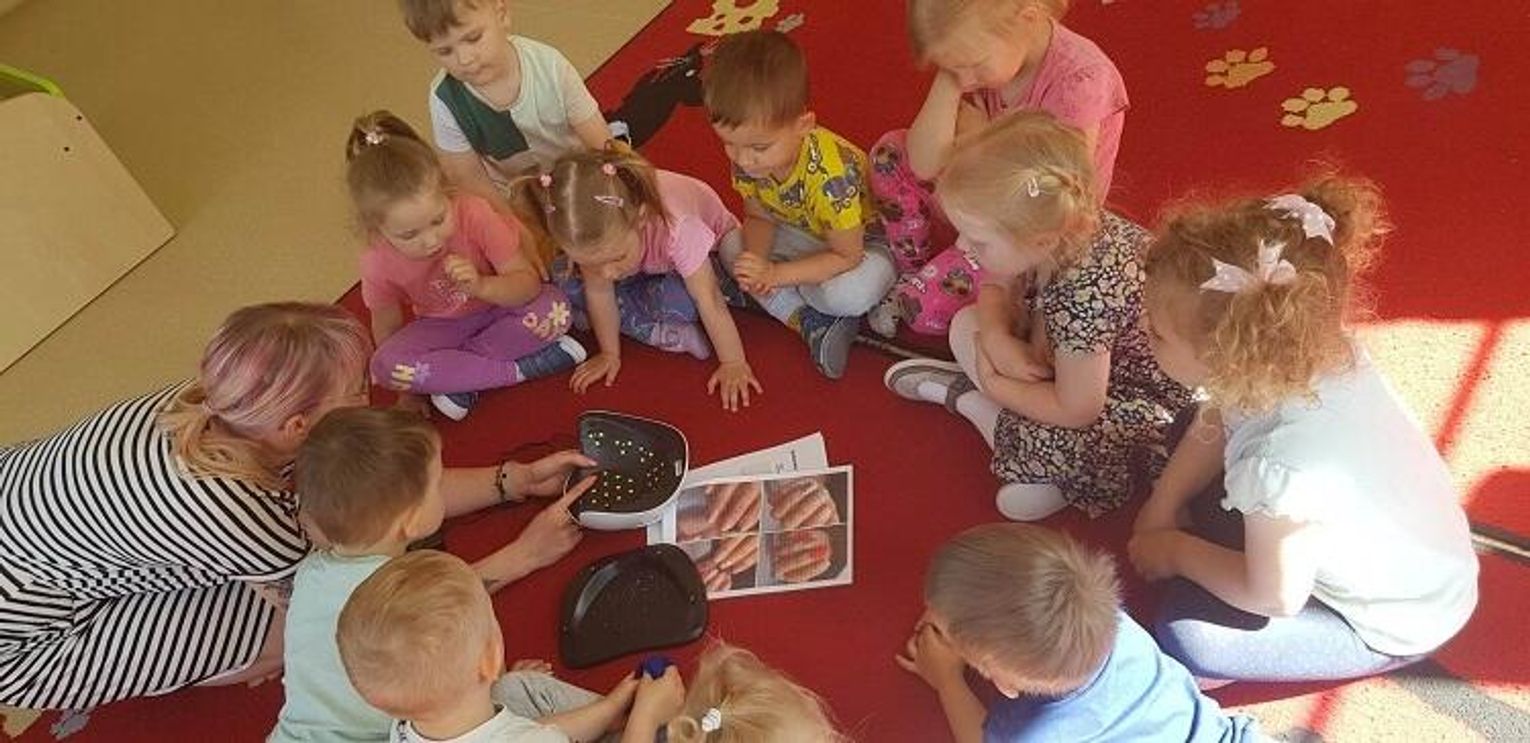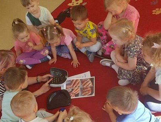 W związku z powyższym dziś w grupie "Tygryski" odbyło się interesujące spotkanie z panią Katarzyną Cała – manikiurzystką, mamą naszej Hani. Na początku wizyty pani Kasia pokazała dzieciom obrazki i opowiedziała o paznokciach. Przybliżyła przedszkolakom zasady dbania o higienę, zdrowie i wygląd. Wyjaśniła również znaczenie wyrazów "manicure" i "pedicure". Następnie zaprezentowała i omówiła różne akcesoria niezbędne do pielęgnacji stóp i dłoni. Pani Kasia opowiedziała również o tym, jakie zabiegi wykonuje w swoim gabinecie kosmetycznym. Dzieci słuchały pani Kasi z wielkim zaciekawieniem. Największą atrakcją okazała się jednak pielęgnacja dłoni przepysznie pachnącym peelingiem oraz malowanie paznokci chętnym dzieciom. Na koniec "Tygryski" mogły się poczęstować upieczonymi przez panią Kasię babeczkami oraz świeżymi truskawkami.