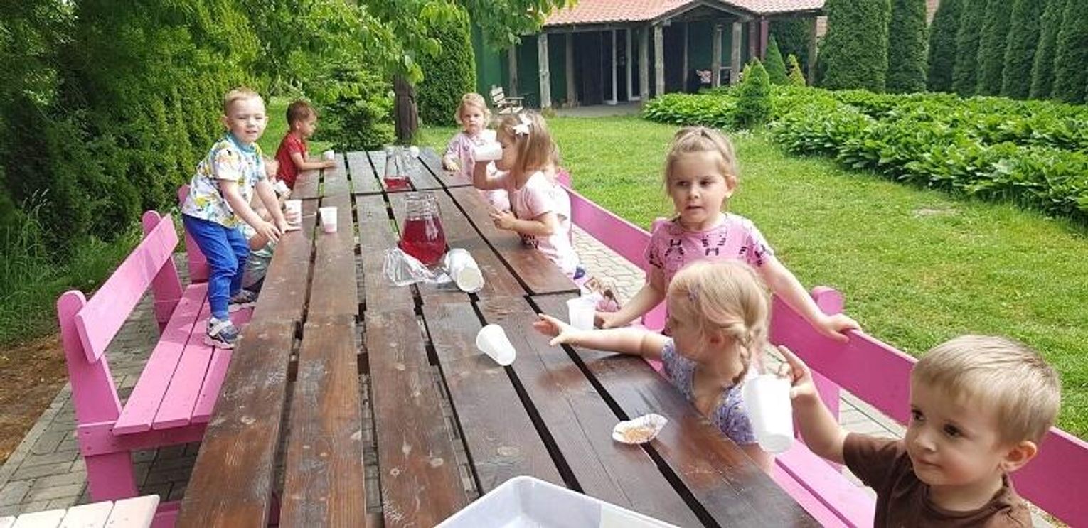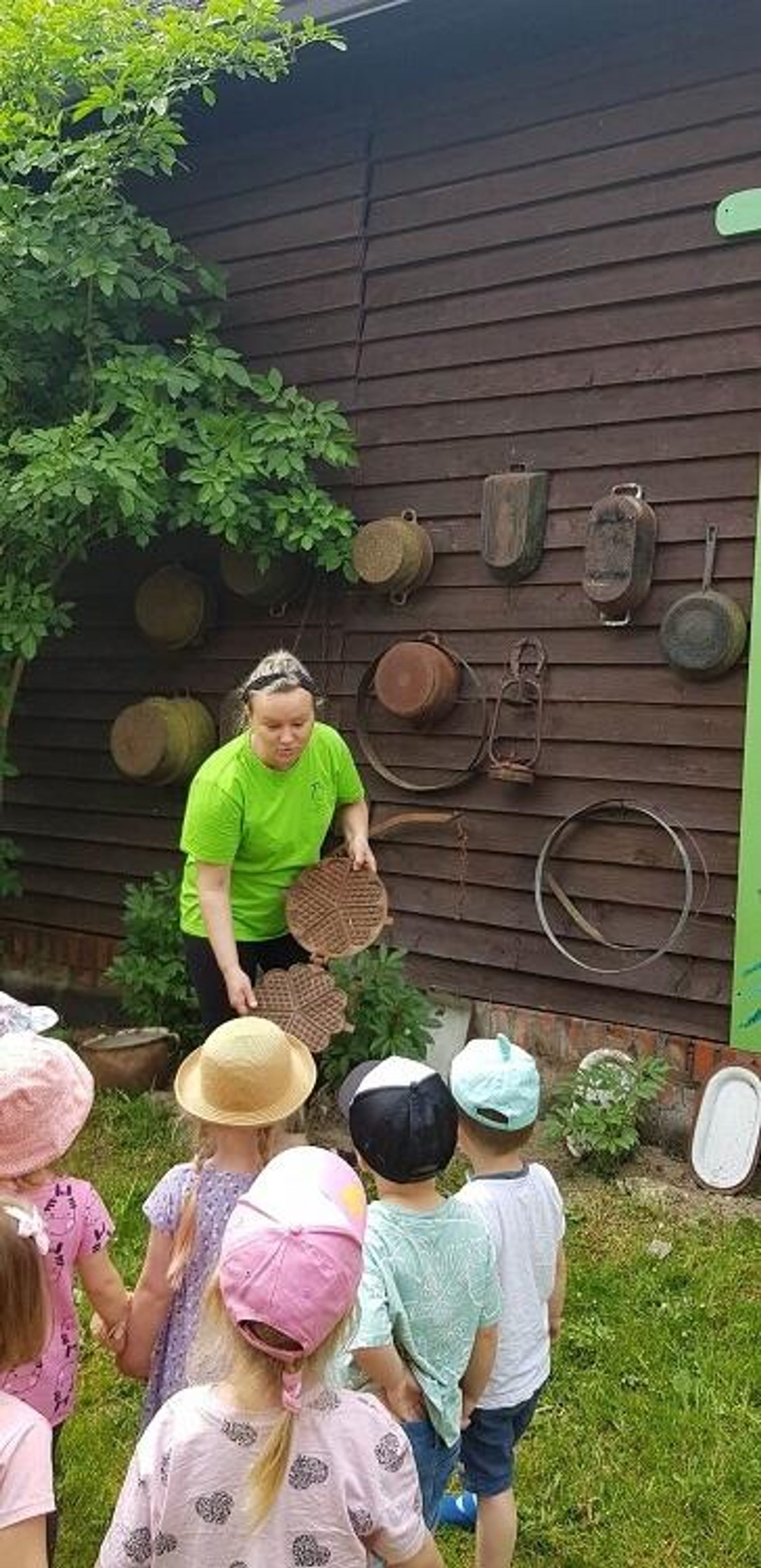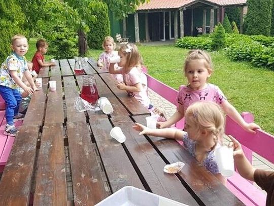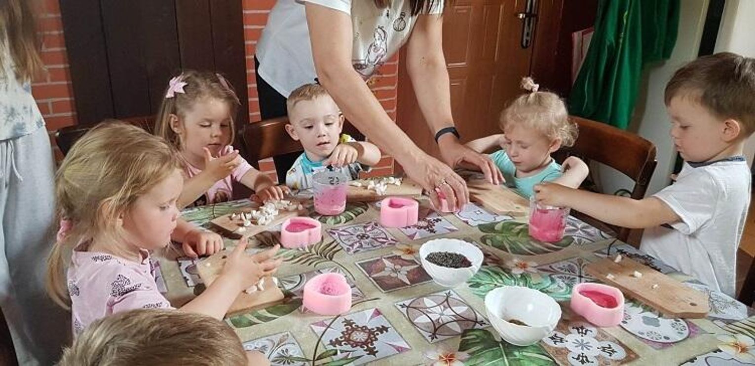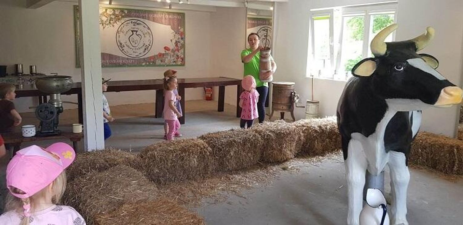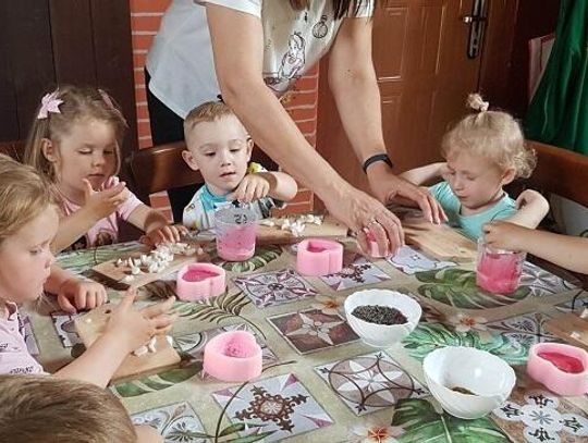 W środę 23 maja dzieci z grupy "Tygryski" pojechały do Sąp, aby w pięknych okolicznościach przyrody przygotować pachnące mydełka dla mam. Podczas pobytu w zagrodzie edukacyjnej "Ziołowy Dzbanek" dzieci miały okazję zwiedzić gospodarstwo i poznać jego mieszkańców. Szczególną sympatię wzbudziły kozy, które bardzo ochoczo jadły źdźbła mleczu z rąk dzieci, króliczki oraz krowa Balbina. Ponad to gościliśmy w Chacie Zielarskiej, gdzie wśród starodawnych sprzętów codziennego użytku czas jakby się zatrzymał, a w oknach wiszą pęki pachnących ziół z pobliskich łąk. Głównym punktem pobytu w gospodarstwie były warsztaty mydlarskie, podczas których dzieci z pomocą pani Iwonki wykonały przepiękne, kolorowe i pachnące ziołami mydełka.