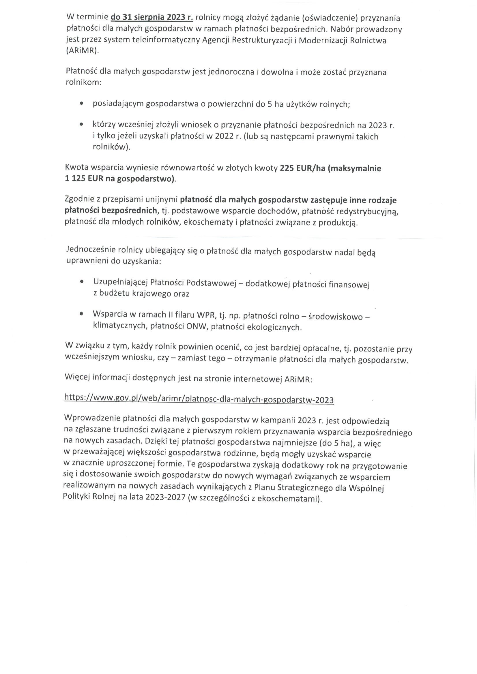 Informacja dotycząca płatności dla małych gospodarstw.