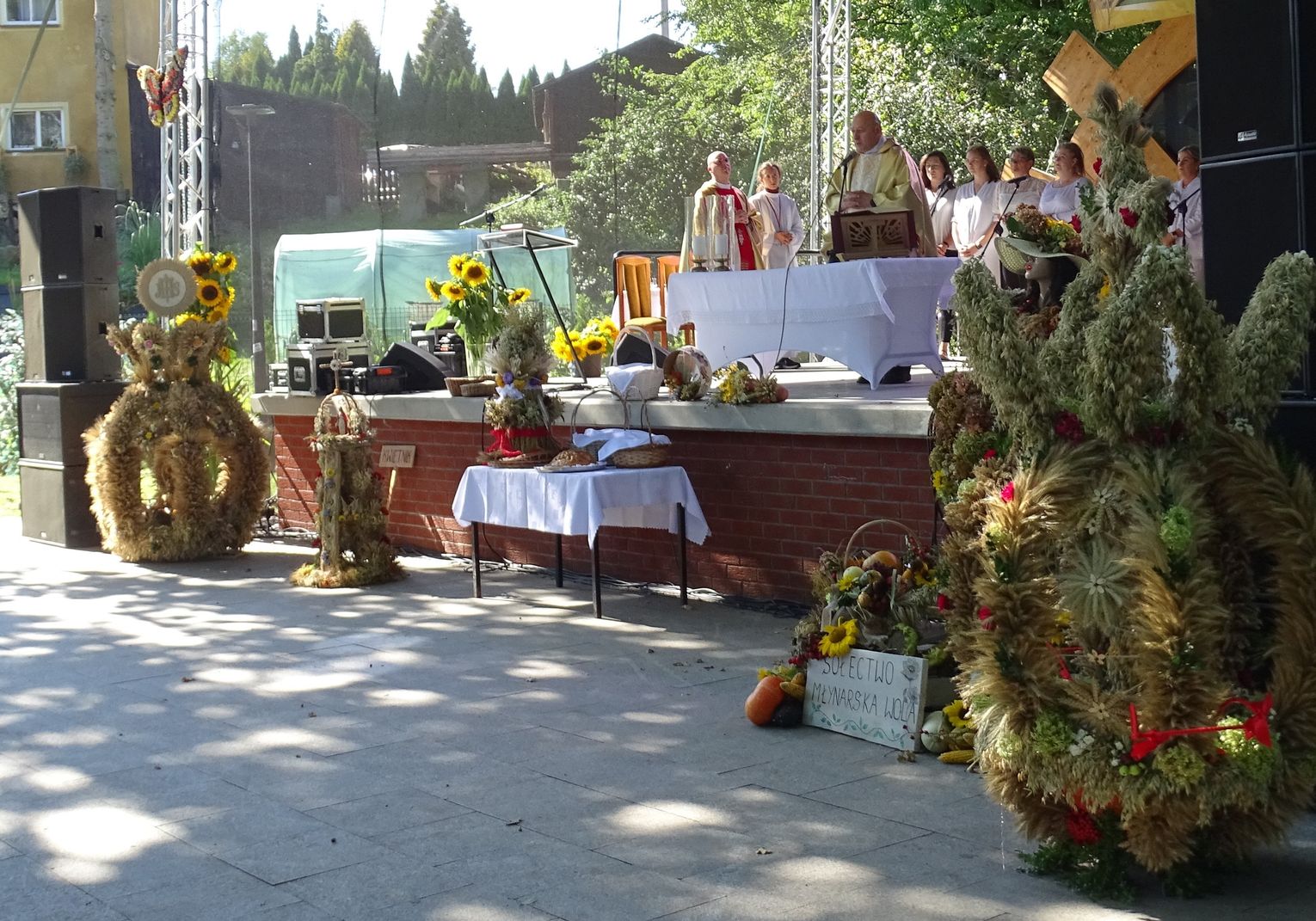 Wieńce przygotowane zostały przez: sołectwo Karszewo, sołectwo Kwietnik i sołectwo Nowe Monasterzysko. Dary dożynkowe zostały złożone przez Sołectwo Młynarska Wola reprezentowane przez panią Władysławę Kadłubowską, Koło Gospodyń w Młynarach oraz Sołectwo Młynary reprezentowane przez Klub Seniora w Młynarach.