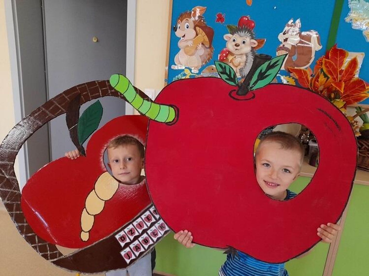 Na pamiątkę tego nietypowego dnia dzieci mogły sobie zrobić zdjęcie w "jabłuszkowej ramce".