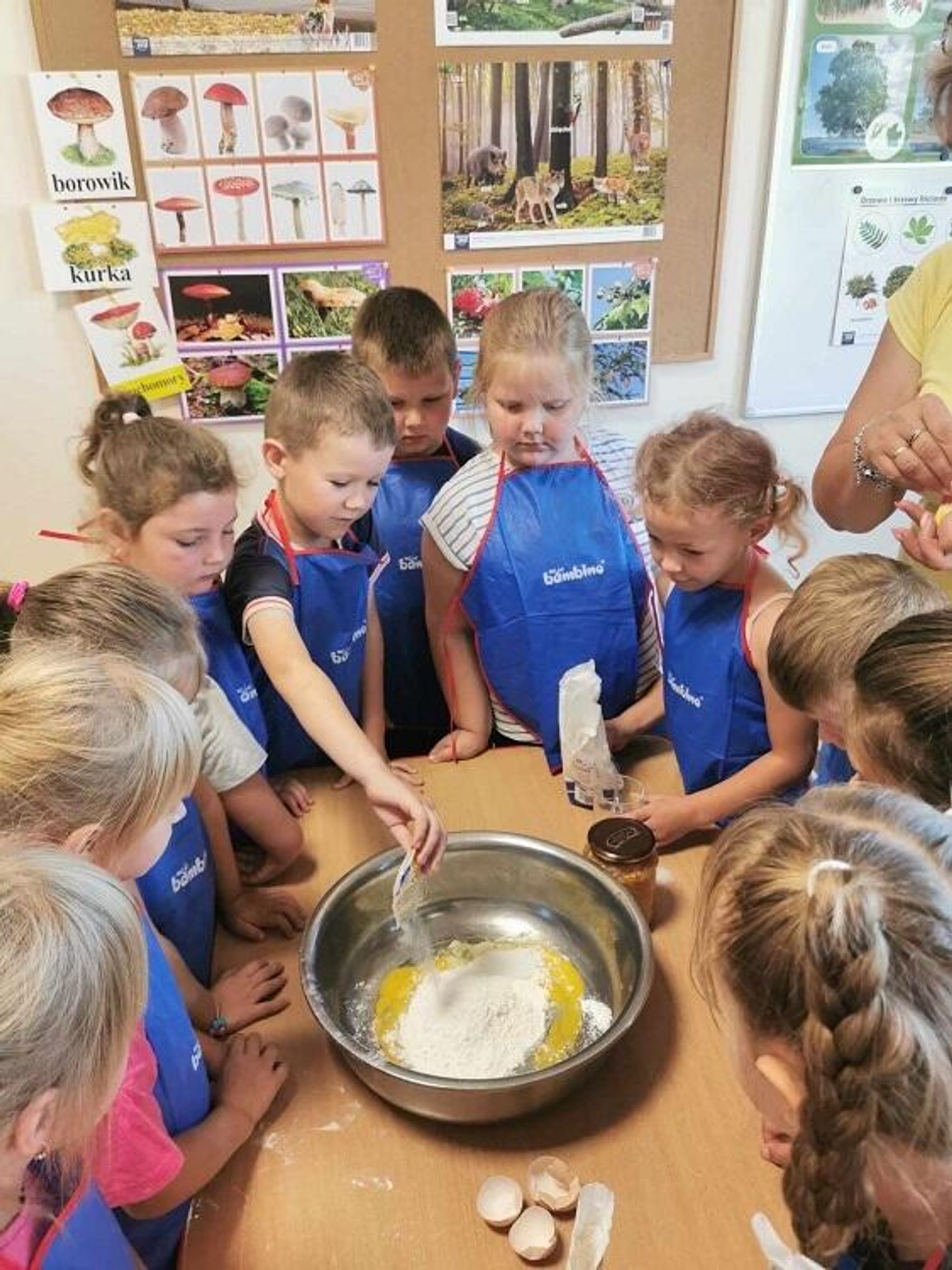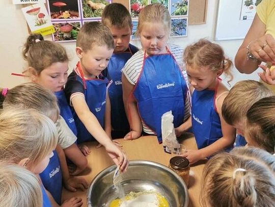 Przedszkolaki miały okazję nie tylko posmakować różnych odmian jabłek, ale także dowiedziały się, do czego można wykorzystać te przepyszne owoce. Nie mogło zabraknąć samodzielnego robienia soków, a nawet wspólnego robienia kompotu i pieczenia szarlotki.
