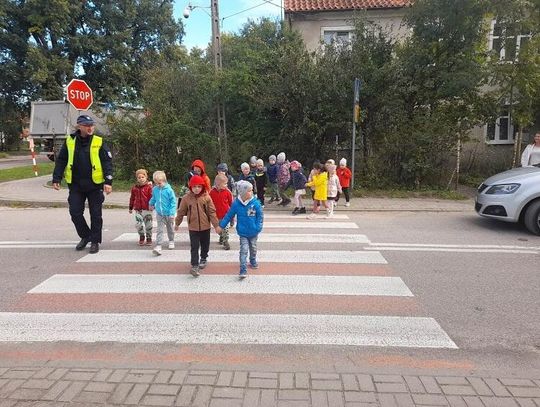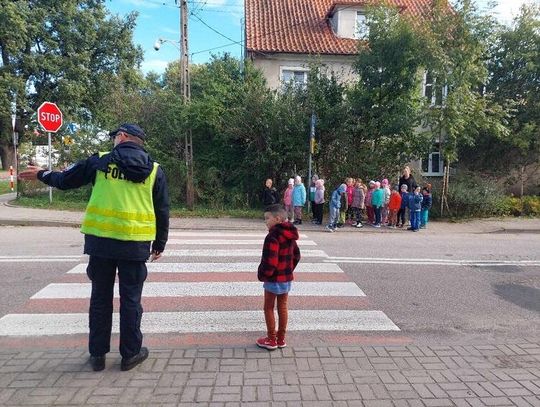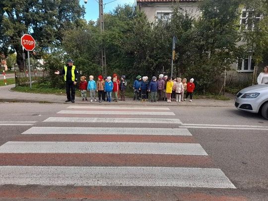 Pan Rębowski w ciekawy sposób opowiedział dzieciom, jak trzeba zachować się podczas przechodzenia przez „zebrę” oraz zapoznał przedszkolaki ze znakami drogowymi, które najczęściej występują w pobliżu szkół i przedszkoli.