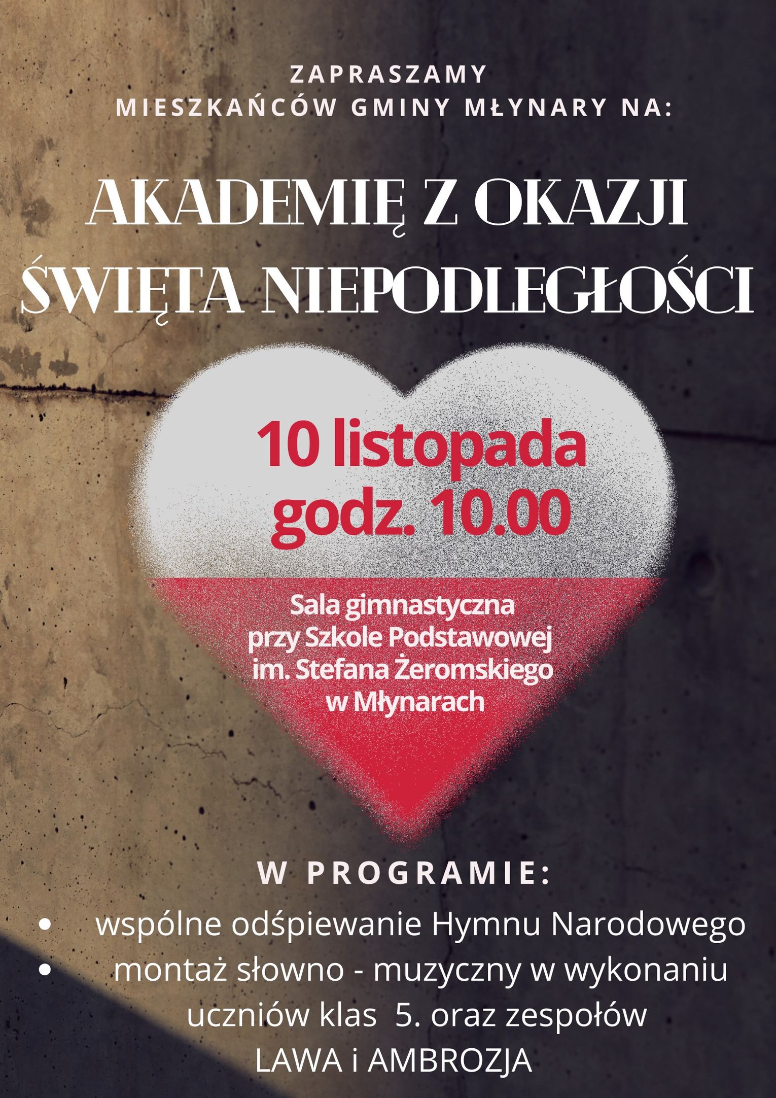 Serdecznie zapraszamy na uroczystą akademię z okazji Święta Niepodległości.