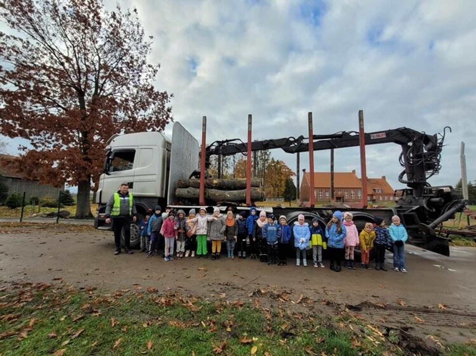 Dzieci już na sam widok tak dużego samochodu były pod wielkim wrażeniem - w szczególności chłopcy. Pan Radek najpierw zademonstrował "Motylkom", w jaki sposób rozładowuje i załadowuje drewno za pomocą żurawia, a następnie chętne dzieci mogły wczuć się w rolę kierowcy, zajmując miejsce na pompowanym fotelu. Większość chłopców stwierdziła, że w przyszłości zostanie kierowcami samochodów ciężarowych tak samo, jak tata Nikosia.