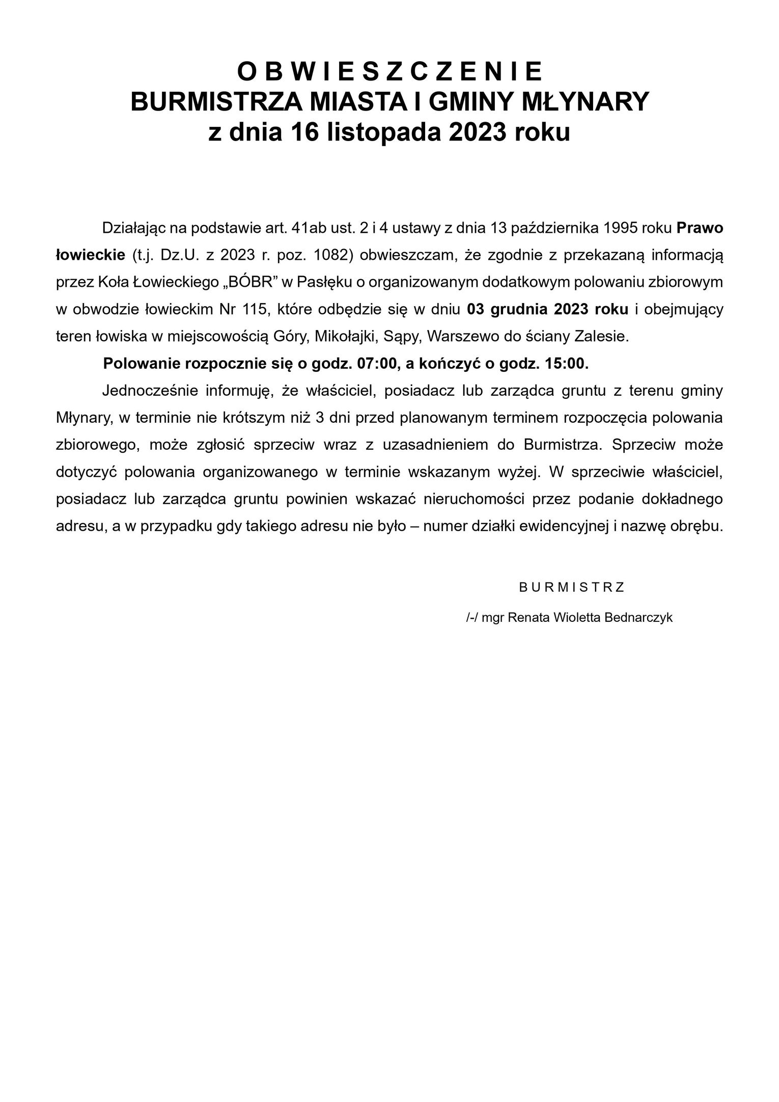 Obwieszczenie Burnistrza Miasta i Gminy Młynary.