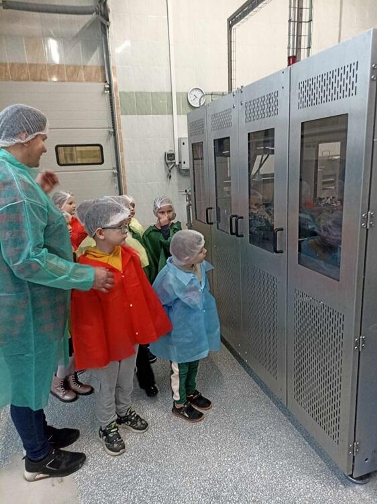 Dzieci miały okazję zapoznać się z całym procesem produkcji sera. Odwiedziły laboratorium, w którym mogły sprawdzić, czy mleko jest dobrej jakości i czy się nadaje do przetwarzania na ser. P. Katarzyna opowiedziała przedszkolakom o tym, jak powstają dziury w serze i ku zaskoczeniu "Motylków" - nie wyjadają ich małe myszki. Dzieci dowiedziały się również, że solanka w której leżakuje ser, jest od 30 lat tą samą, jedynie dosypywana jest do niej sól. Przedszkolakom bardzo spodobała się maszyna, która pakowała 16-kilogramowe "bochny" sera.
