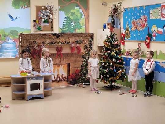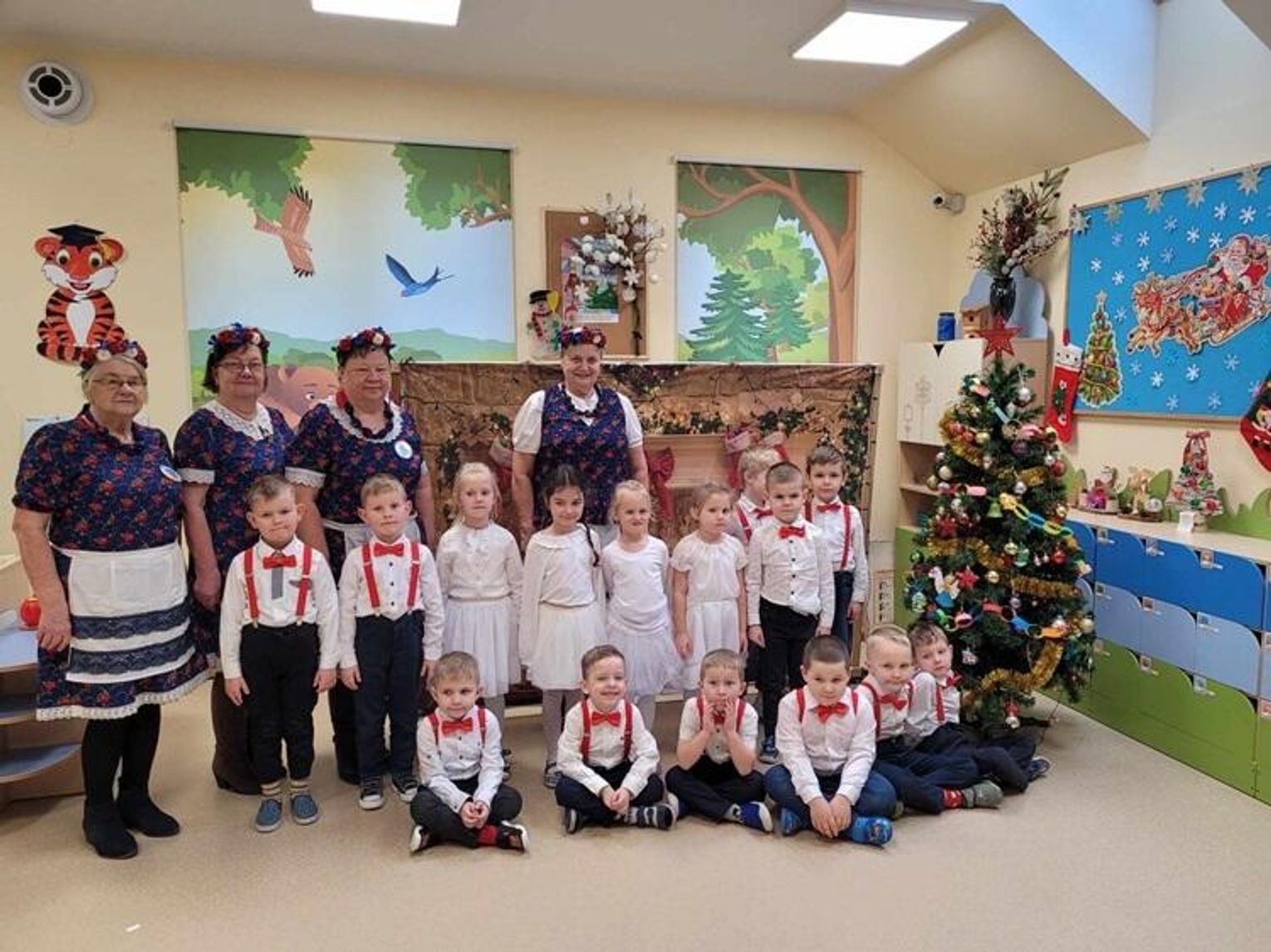 Nasze spotkanie rozpoczął występ dzieci z grupy "Pszczółki", które pod okiem pani Ani Stando przygotowały inscenizację pt. "Świąteczne przygotowania", czyli spojrzenie na święta tak trochę "od kuchni" - przez pryzmat licznych obowiązków z nimi związanymi, ale zakończony wzruszającym układem tanecznym do utworu "Noel" i przesłaniem, że najważniejsze jest wyjście do drugiego człowieka z sercem na dłoni. Warto zaznaczyć, że młodszym kolegom towarzyszył Bartek Witkiewicz z grupy "Motylki", który jako narrator miał okazję zaprezentować, jak dobrze radzi sobie z czytaniem. Mali, z zarazem tak wielcy artyści, zostali oczywiście nagrodzeni gromkimi brawami.