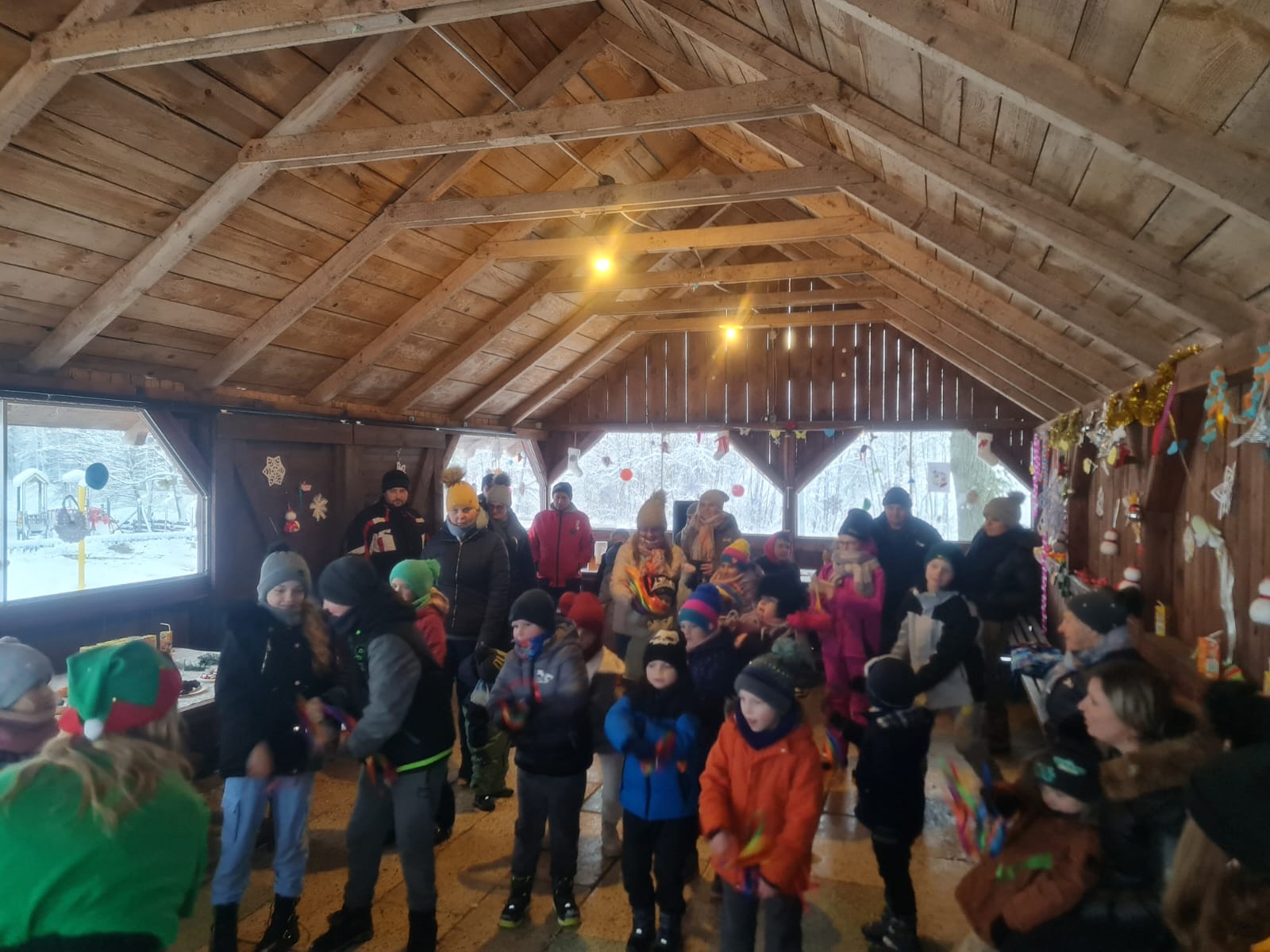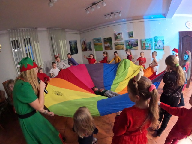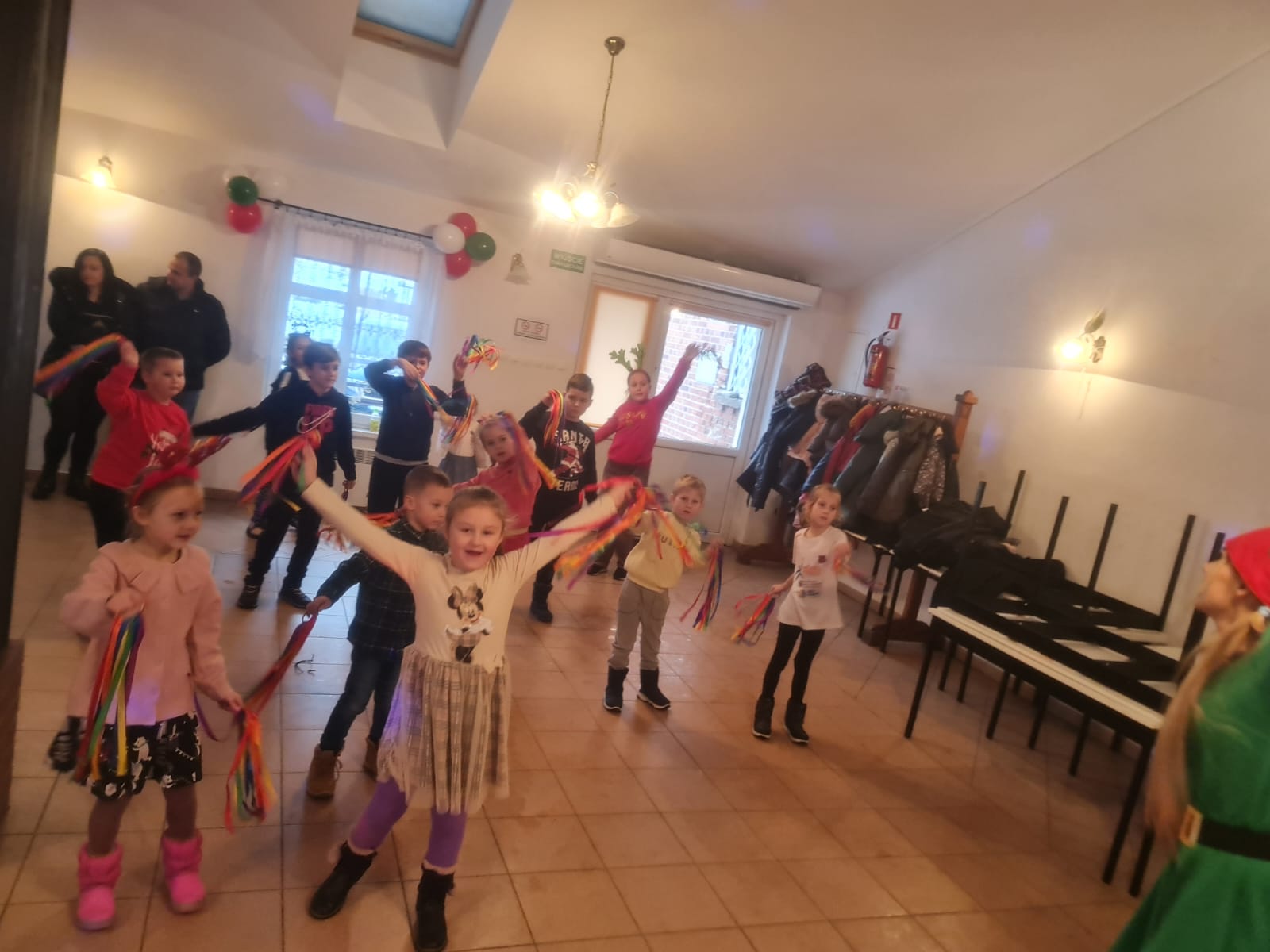 Uczestnicy mikołajkowej zabawy wzięli udział w konkursach i animacjach prowadzonych przez elfy. Nie zabrakło również tańców w rytmie świątecznych utworów. Dzieci odwiedził Święty Mikołaj.
