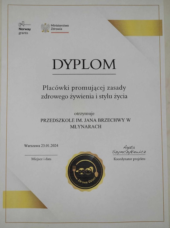 Pani Agata Szymczykiewicz - koordynator projektu, podziękowała nam w mailu za pracę, pasję i oddanie. Cieszymy się, że mogłyśmy wziąć udział w tym przedsięwzięciu i wierzymy, że będzie to miało pozytywny wpływ na podejmowane przez przedszkole działania prozdrowotne.