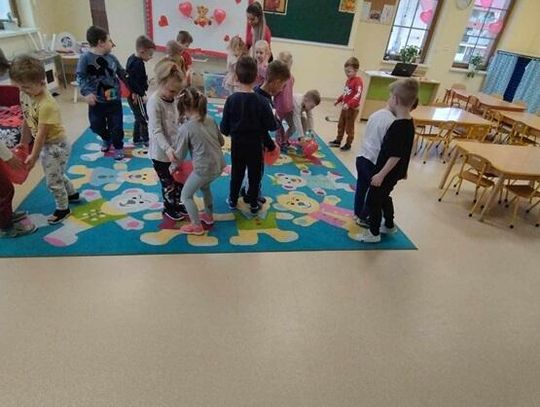 ,,Pszczółki” rozpoczęły dzisiejszy dzień od poznania historii święta zakochanych oraz ciekawostek z nim związanych.