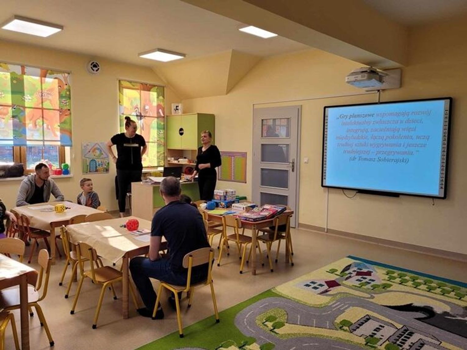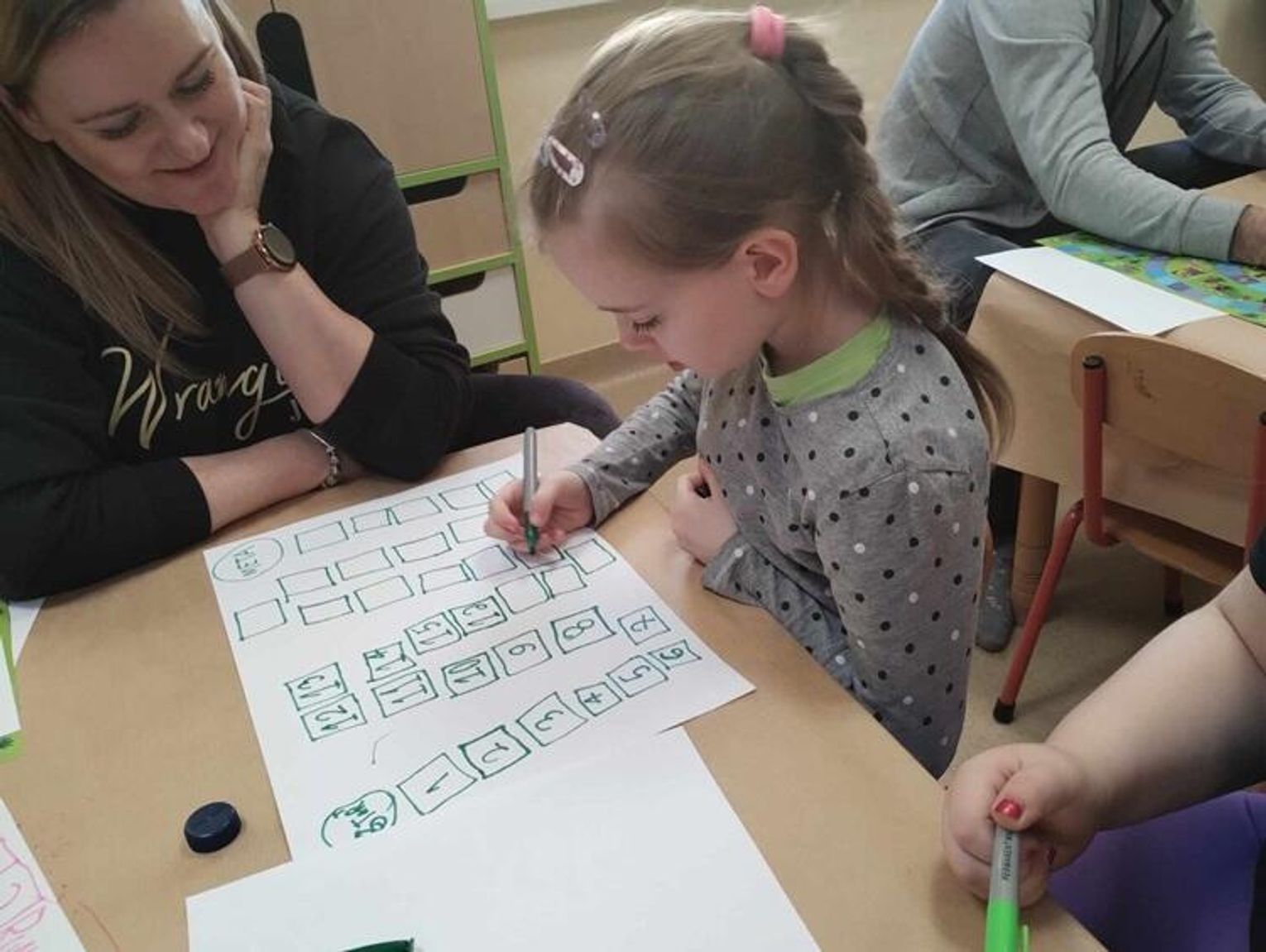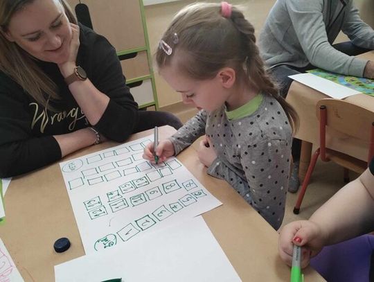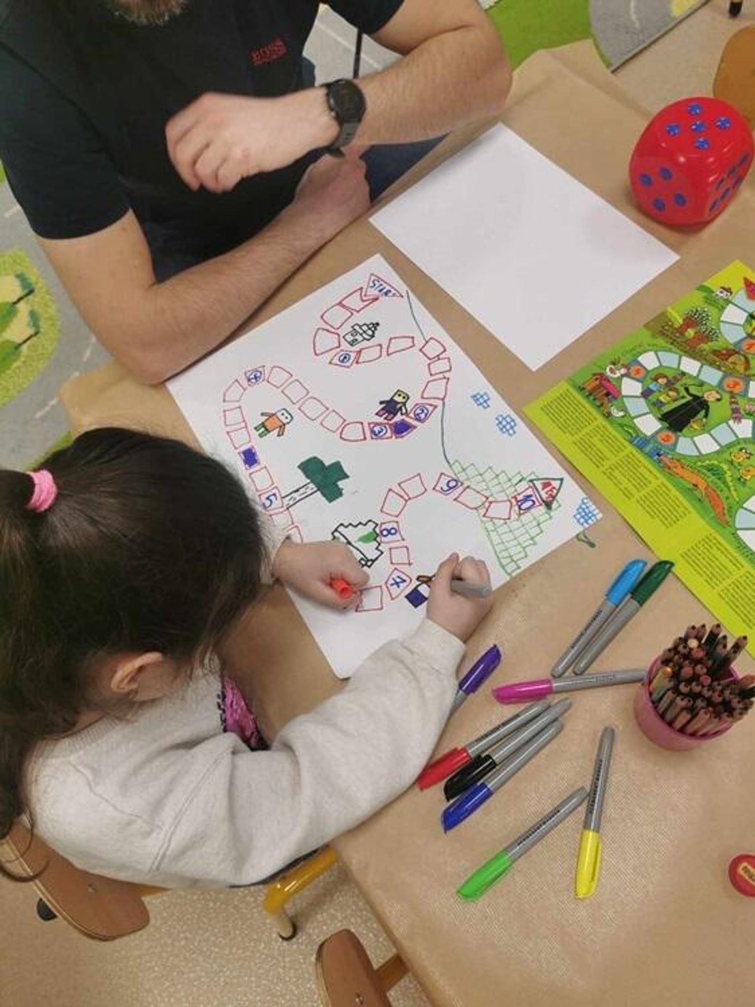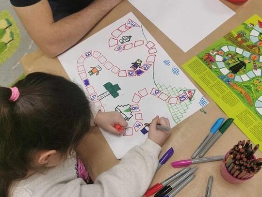 Koordynatorki tego wydarzenia p. Elżbieta Wardzyńska, p. Magdalena Kwarta i p. Agata Frąckiewicz zaprosiły dzieci i rodziców na spotkanie z tzw. planszówkami, ale w dość nietypowym wydaniu - okazało się bowiem, że każda para ma za zadanie stworzenie własnej gry planszowej, której tematem przewodnim jest WIOSNA.