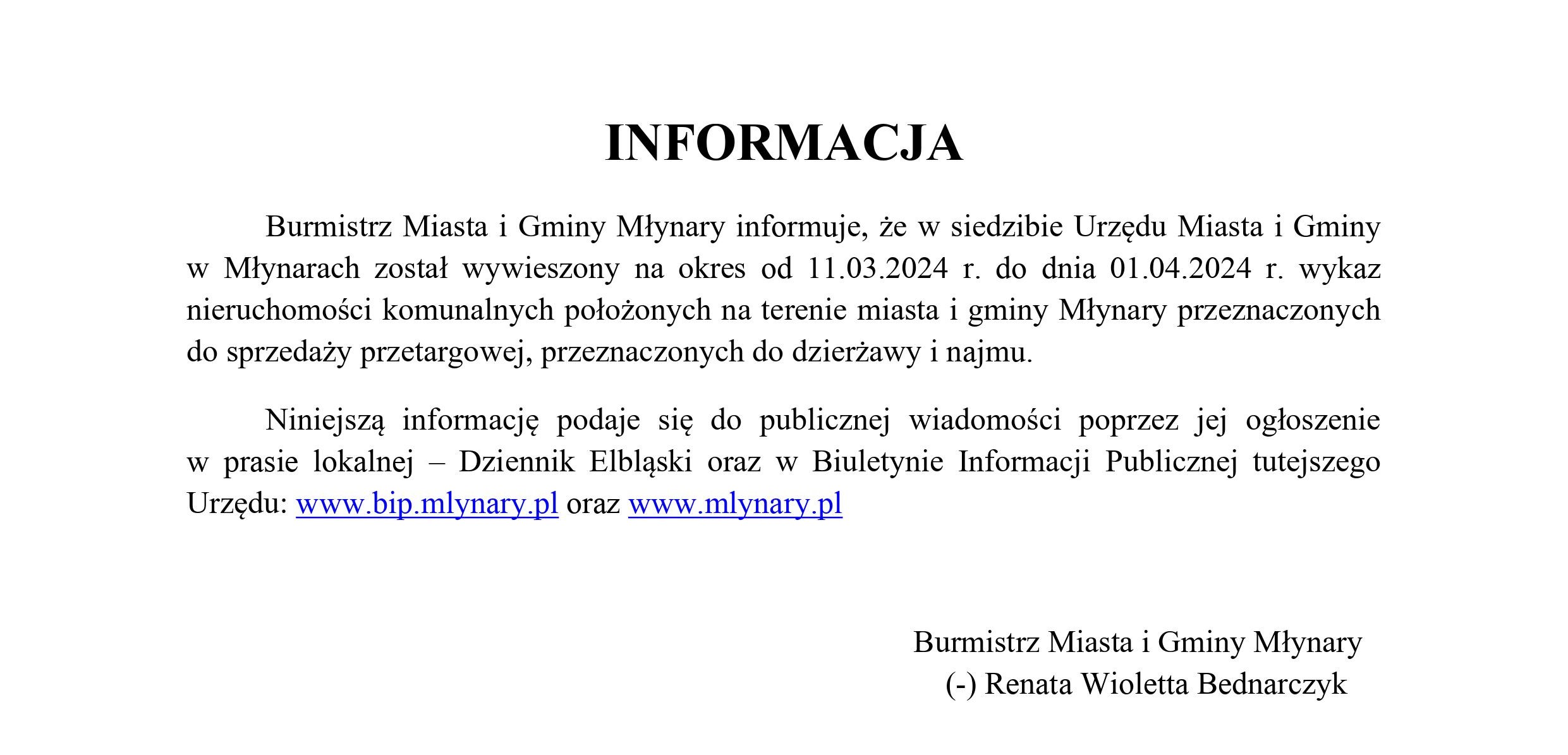 Wykaz nieruchomości komunalnych położonych na terenie miasta i gminy Młynary przeznaczonych do sprzedaży przetargowej, przeznaczonych do dzierżawy i najmu.