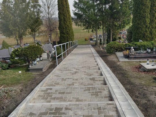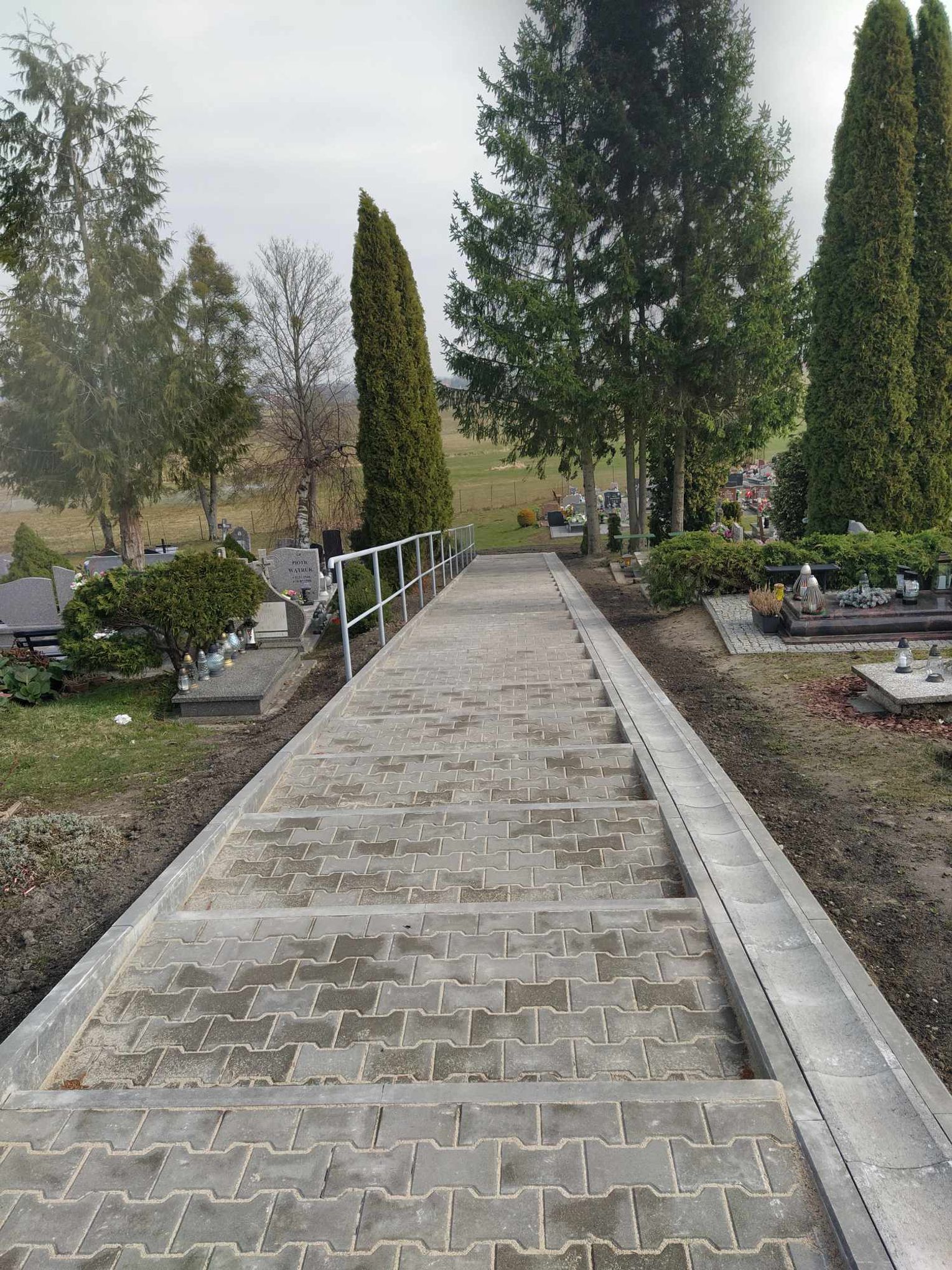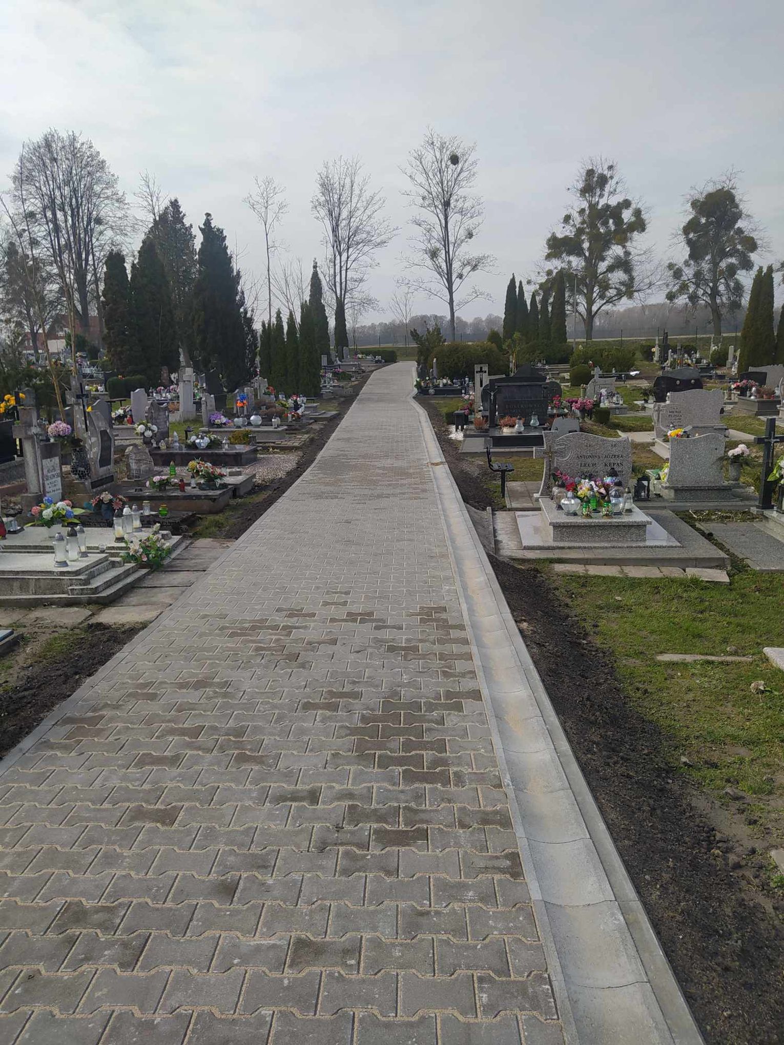 W ramach zadania, wyłoniony w drodze zapytania ofertowego Wykonawca - Usługi Brukarskie S.C. Mariusz Stankiewicz, Krzysztof Kuźma z siedzibą w Elblągu wykonał kolejny etap modernizacji cmentarza komunalnego