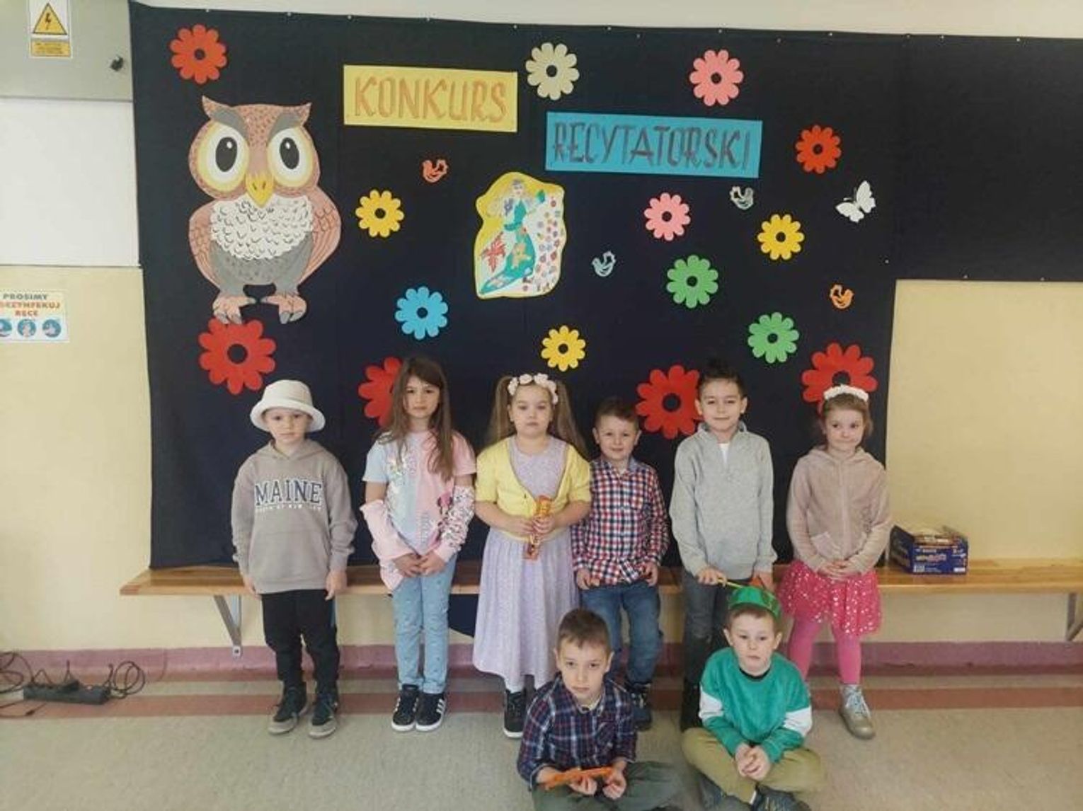 Konkurs został zorganizowany z okazji Pierwszego Dnia Wiosny. Nasze przedszkole reprezentowały dzieci z grupy "Motylki": Kornelia Kmin, Hanna Stołycia, Adrian Głażewski, Dawid Górski, Nikodem Grzegorzak, Julian Łesyk i Wiktor Pochodaj.