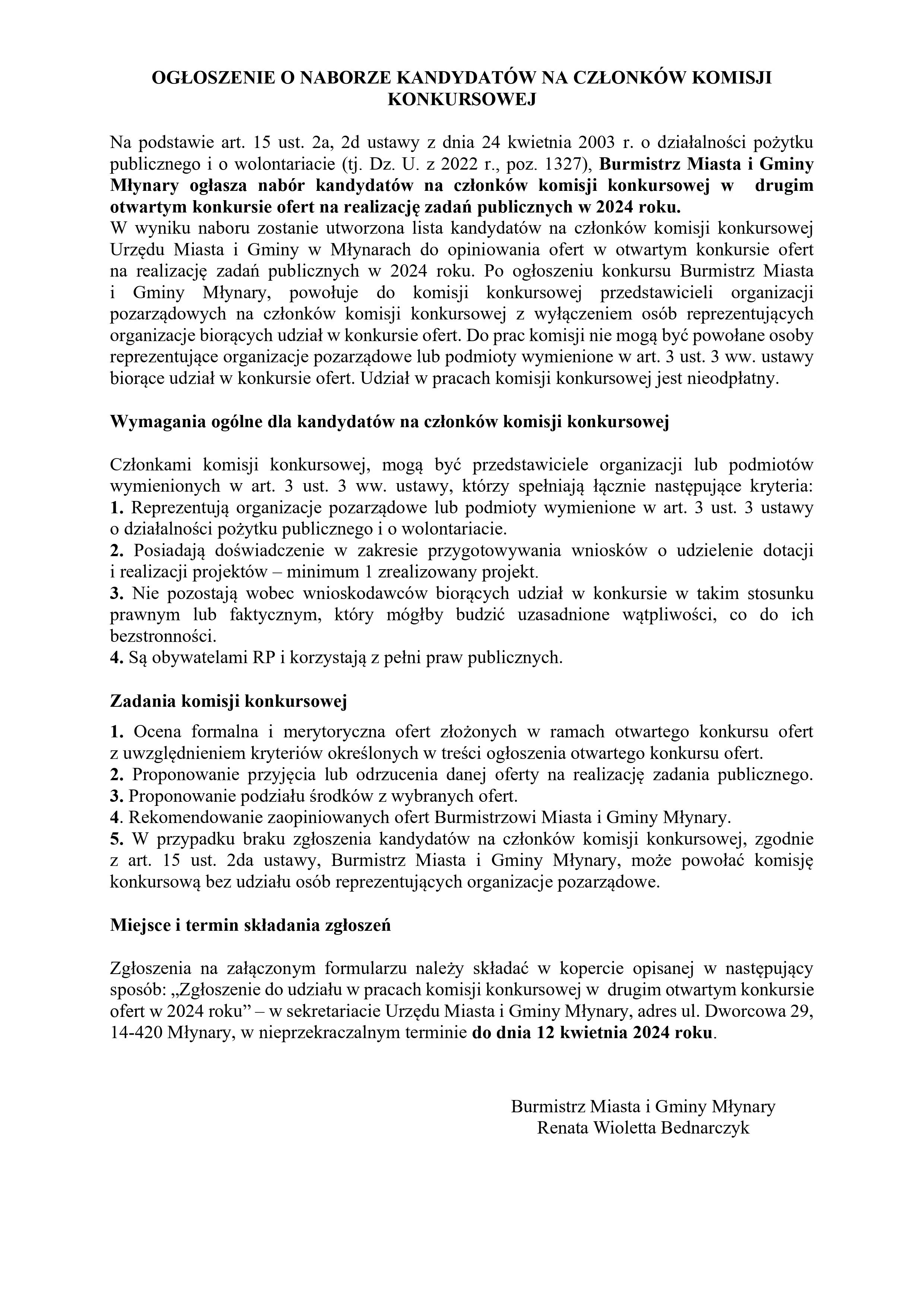 OGŁOSZENIE O NABORZE KANDYDATÓW NA CZŁONKÓW KOMISJI KONKURSOWEJ