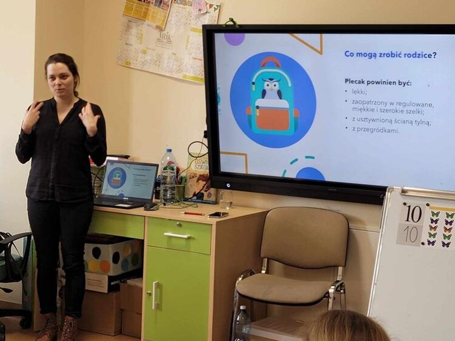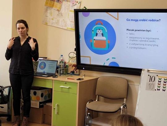 Pani Izabela Ostasz oraz pani Jolanta Jasińska-Sobańska - pracownice sekcji Promocji Zdrowia i Oświaty Zdrowotnej, w ramach akcji "Moje dziecko idzie do szkoły", poruszyły takie kwestie, jak: