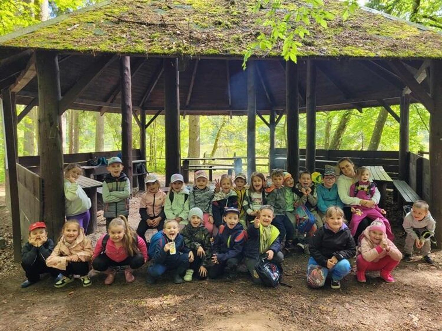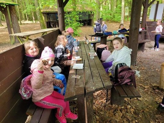 Naszym przewodnikiem był leśniczy p. Antoni Czyż. Przedszkolaki z każdym kolejnym krokiem zagłębiały się w las, który skrywa w sobie wiele tajemnic. Pan leśniczy w bardzo ciekawy i przystępny sposób opowiadał im m.in. o drzewach iglastych i liściastych, sposobach rozmnażania się drzew, warstwach lasu, a także o zwierzętach, które można w lesie spotkać. Wycieczka do Zaporowa miała nie tylko walory edukacyjne, ale także i zdrowotne - dzieci spędziły miło czas na świeżym powietrzu w otoczeniu pięknej, malowniczej przyrody leśnej. Po długim spacerze na "Motylki" czekało ognisko, przy którym mogły zasiąść i upiec pyszną kiełbaskę.