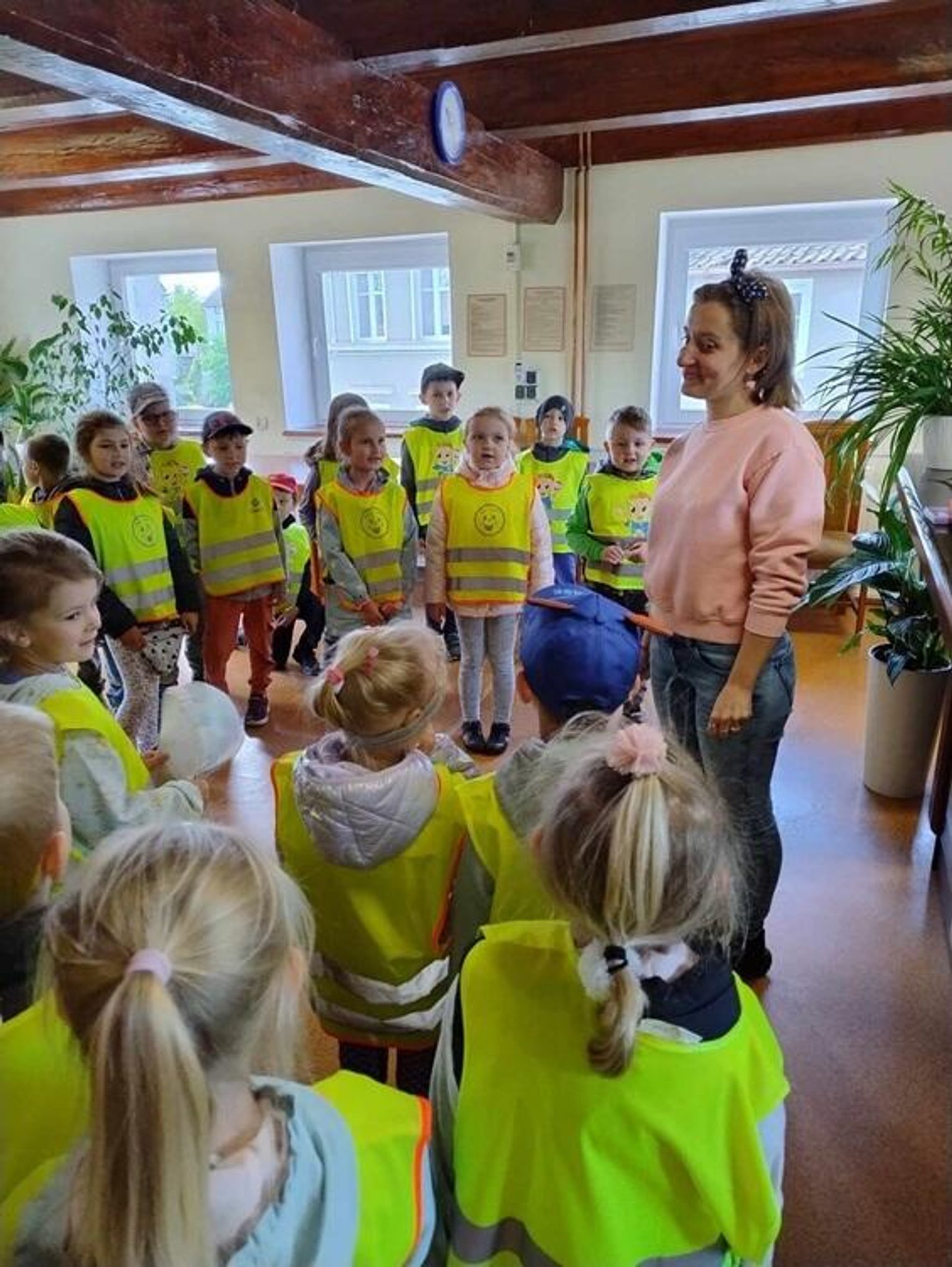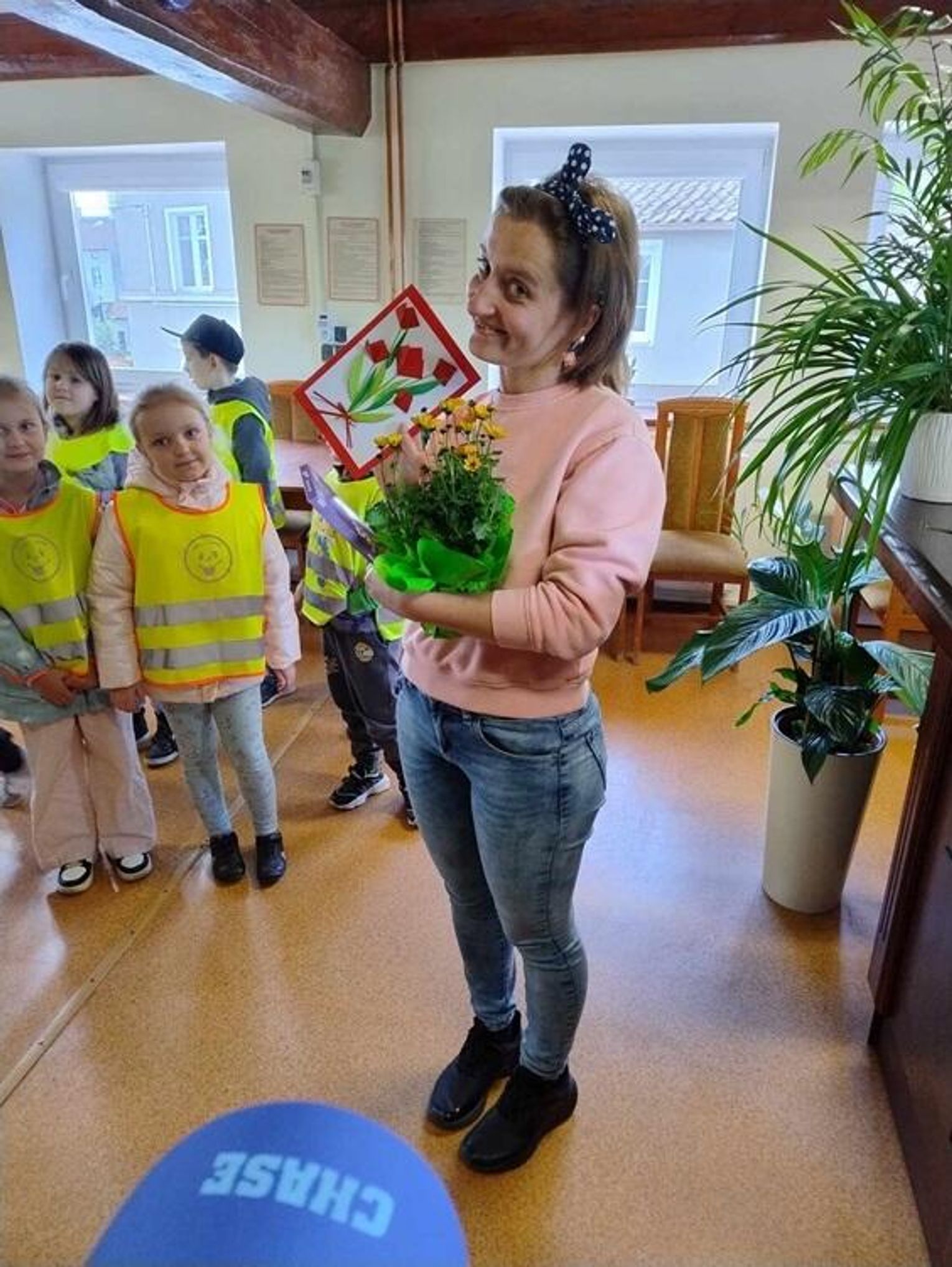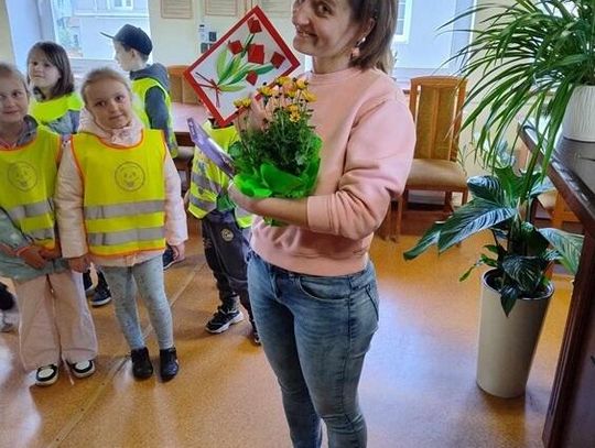 W związku z tym nie mogliśmy tego dnia zapomnieć o pani Katarzynie Mościckiej-Pisarskiej z Biblioteki Publicznej w Młynarach, która zawsze chętnie nas odwiedza i organizuje ciekawe zajęcia w bibliotece. "Pszczółki" i "Motylki" udały się zatem do biblioteki, gdzie złożyły pani Kasi życzenia w imieniu wszystkich przedszkolaków, zaśpiewały "Sto lat" i wręczyły drobny upominek. Niespodzianka chyba się udała, bo pani Kasia była bardzo zaskoczona i wzruszona!
