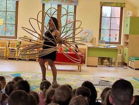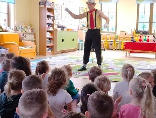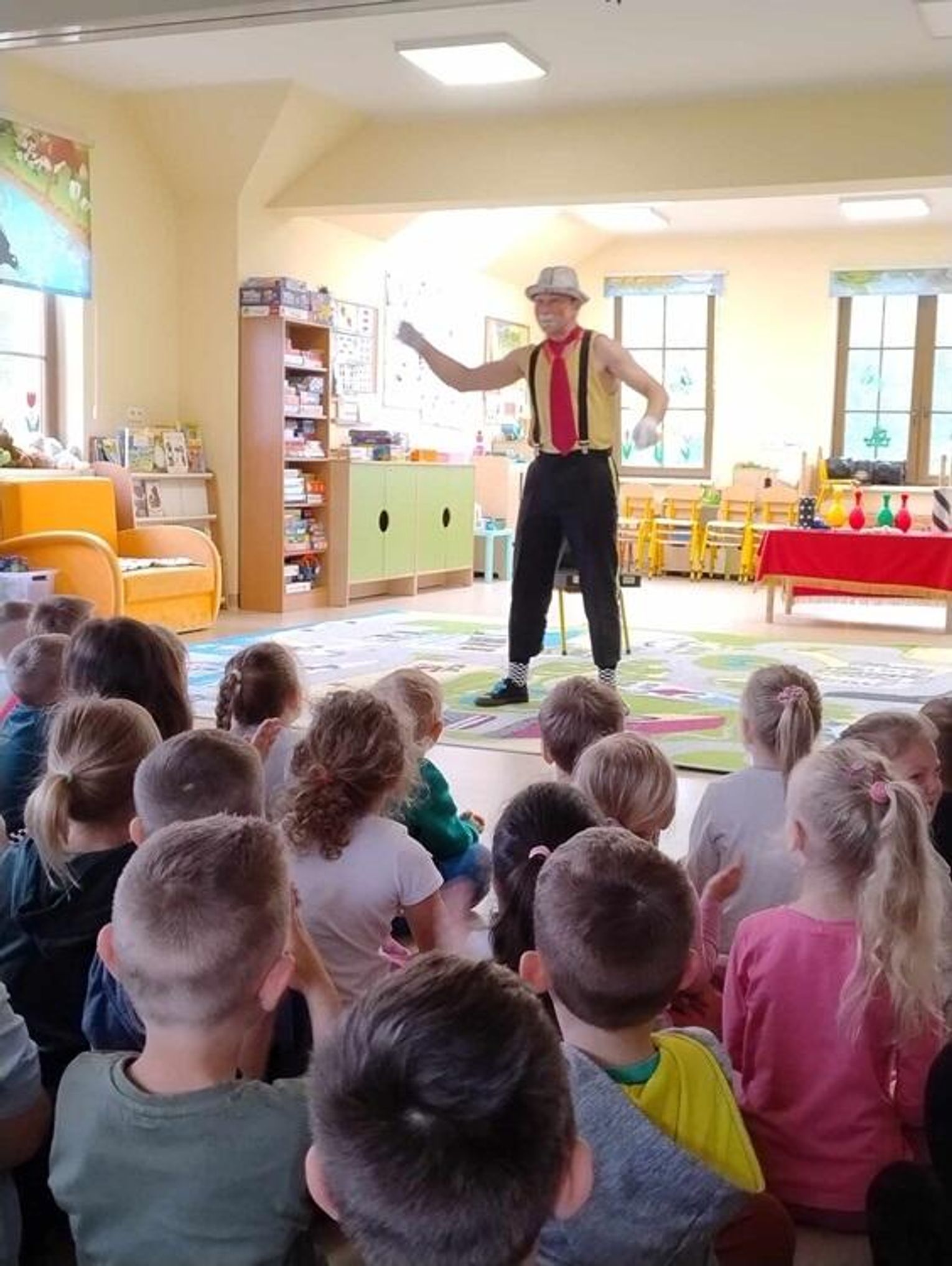 Głównym bohaterem tego spotkania był klaun, który nie tylko bawił zgromadzonych, ale zapraszał do wspólnych występów chętnych przedszkolaków. Ochotnicy mogli przekonać się na własnej skórze, że wykonanie z pozoru łatwych rzeczy nie jest wcale takie proste, ale daje wiele satysfakcji i sprawia wielką radość - zwłaszcza, gdy się jest dopingowanym przez koleżanki oraz kolegów i nagradzanym gromkimi brawami! Występ cyrkowców był dla wszystkich świetną zabawą i niezapomnianym przeżyciem.