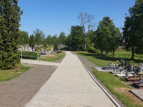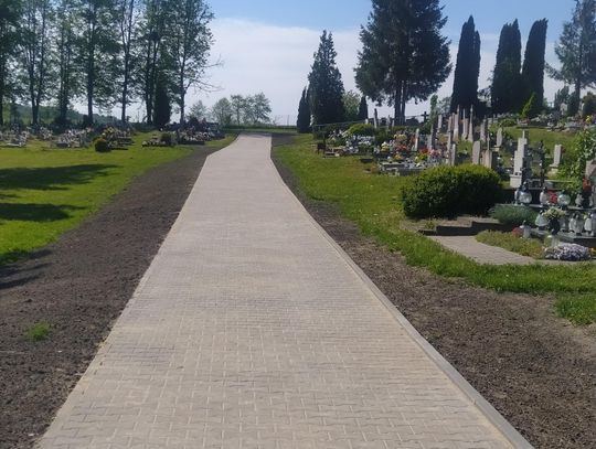 W ramach zadania, wyłoniony w drodze zapytania ofertowego Wykonawca - Usługi Brukarskie S.C. Mariusz Stankiewicz, Krzysztof Kuźma z siedzibą w Elblągu wykonał kolejny etap modernizacji cmentarza komunalnego