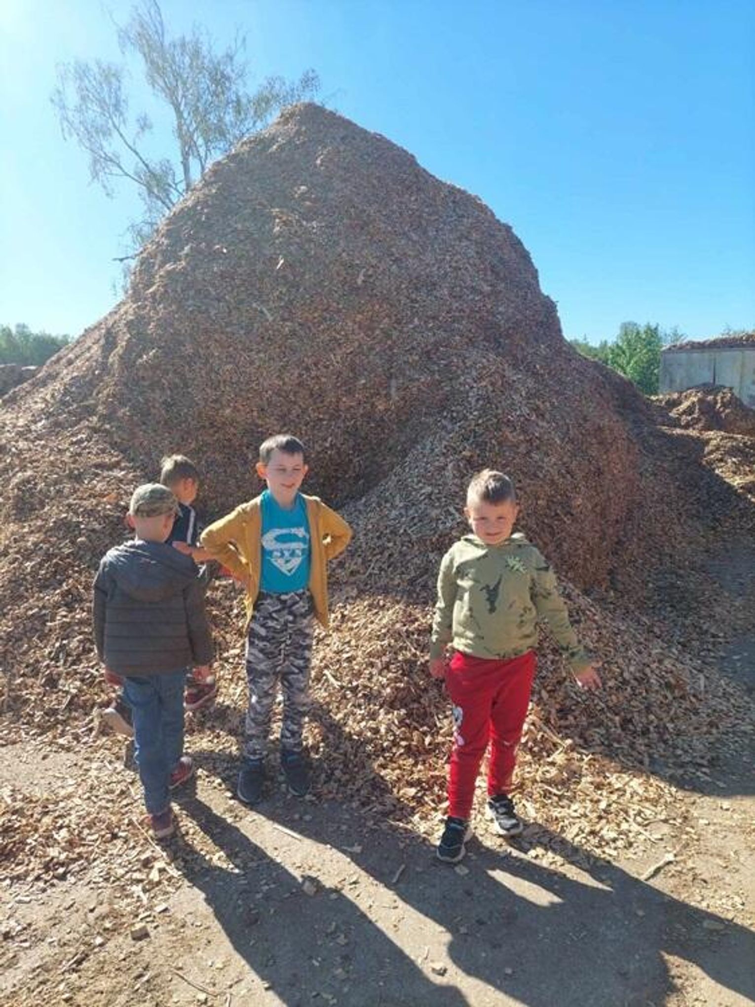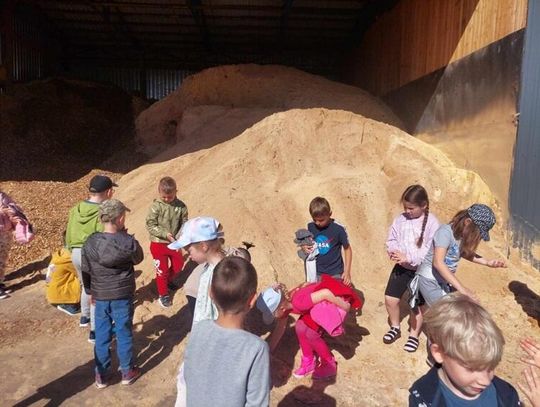 Celem naszej wycieczki było zapoznanie się z procesem obróbki drewna - od dębu ściętego w lesie do deski. Po zakładzie oprowadził nas sam właściciel - p. Jarosław Garbaczewski, który w ciekawy sposób opowiedział dzieciom o całym cyklu produkcyjnym. Zwiedzanie rozpoczęliśmy od placu surowcowego, gdzie składuje się drewno. Chłopcy byli zachwyceni widokiem ciągników i sztaplarek transportujących duże bele drewna. Zapoznaliśmy się również z procesem odkorowywania drewna i zwiedziliśmy suszarnię z komorą "Pustynia", w której panowała temperatura od 40 do 60 stopni Celsjusza. Na końcu mogliśmy podziwiać produkt finalny, jakim jest deska np. podłogowa. Była to naprawdę ciekawa lekcja dla naszych przedszkolaków.