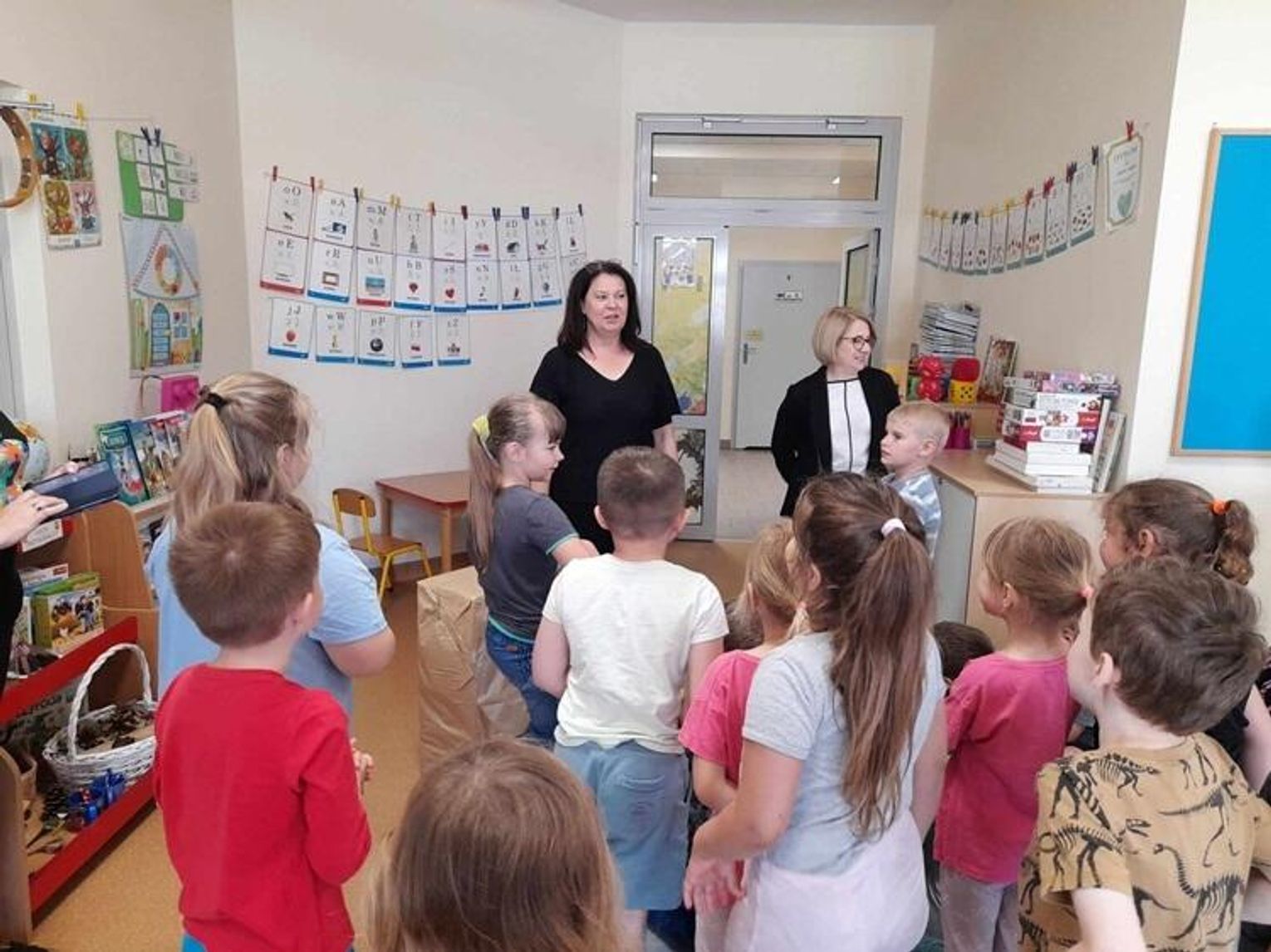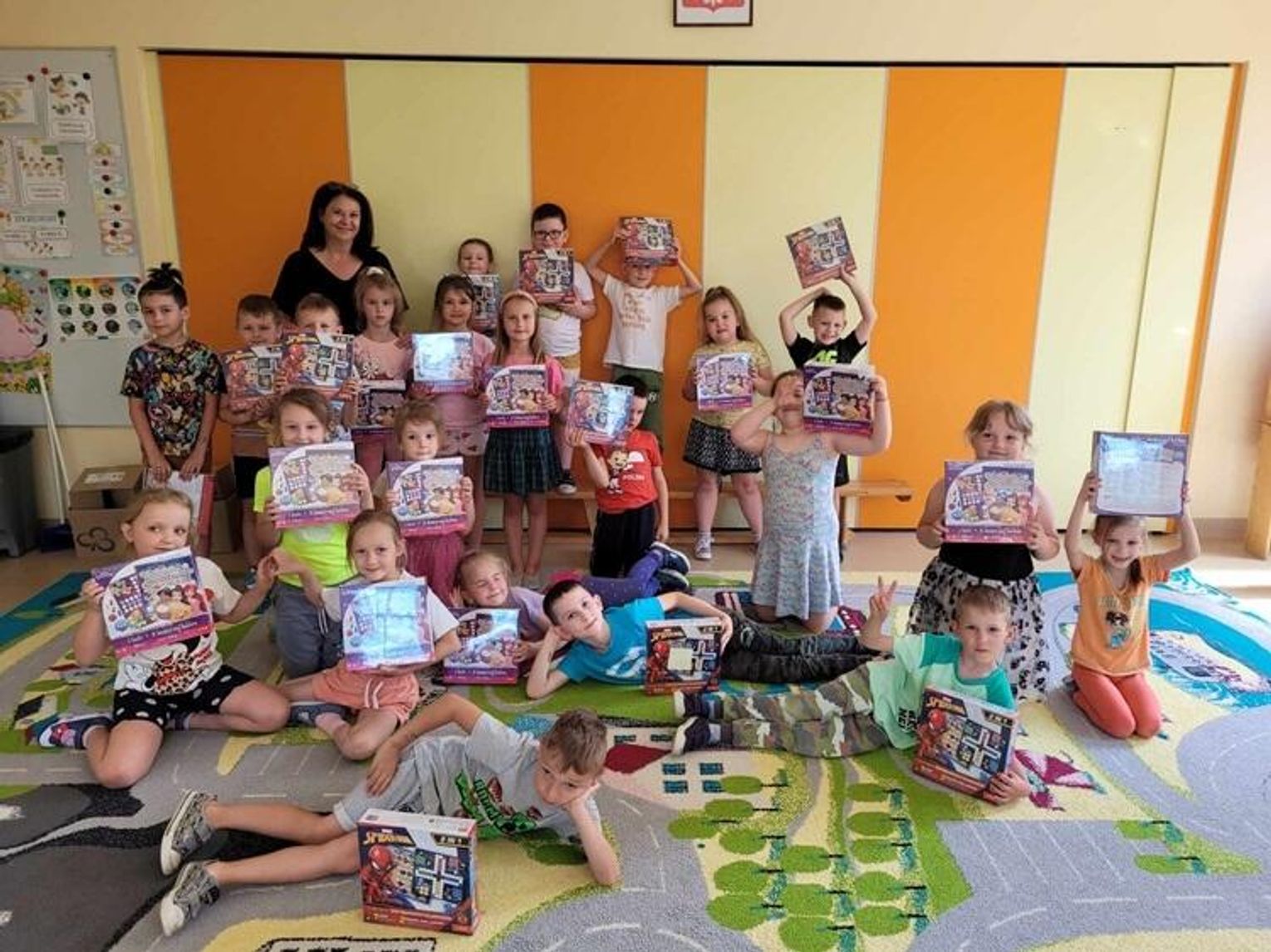Oczywiście był to dzień, w którym nie zabrakło czasu ani na zabawę, ani na niespodzianki, a jedną z nich była z pewnością wizyta p. Renaty Bednarczyk - Burmistrz Miasta i Gminy Młynary, wraz z p. Anną Kołodziej-Rabiczko - Sekretarz Miasta i Gminy Młynary. Pani Burmistrz przyjechała do przedszkolaków nie tylko z serdecznymi życzeniami z okazji ich święta, ale także z upominkiem dla każdego z nich - grą planszową w wersji dla dziewczynek i chłopców, przy której można miło spędzić czas wraz z rodzicami i rodzeństwem.