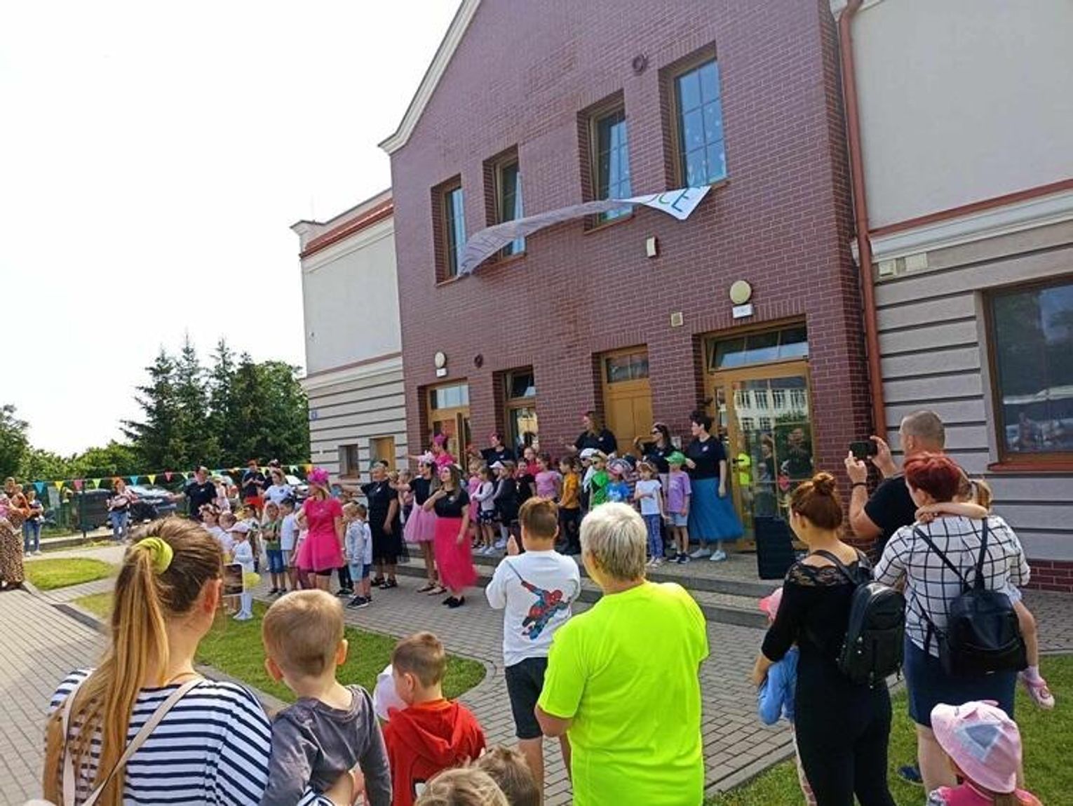 Zebranych gości przywitaliśmy piosenką "Całkiem Nowa Bajka" i tym samym nawiązaliśmy do postaci naszego patrona - Jana Brzechwy, a następnie zatańczyliśmy do utworu "Dubidubidu", która niesie ze sobą przesłanie dzielenia się i zachęca do zabawy, śpiewu oraz tańca