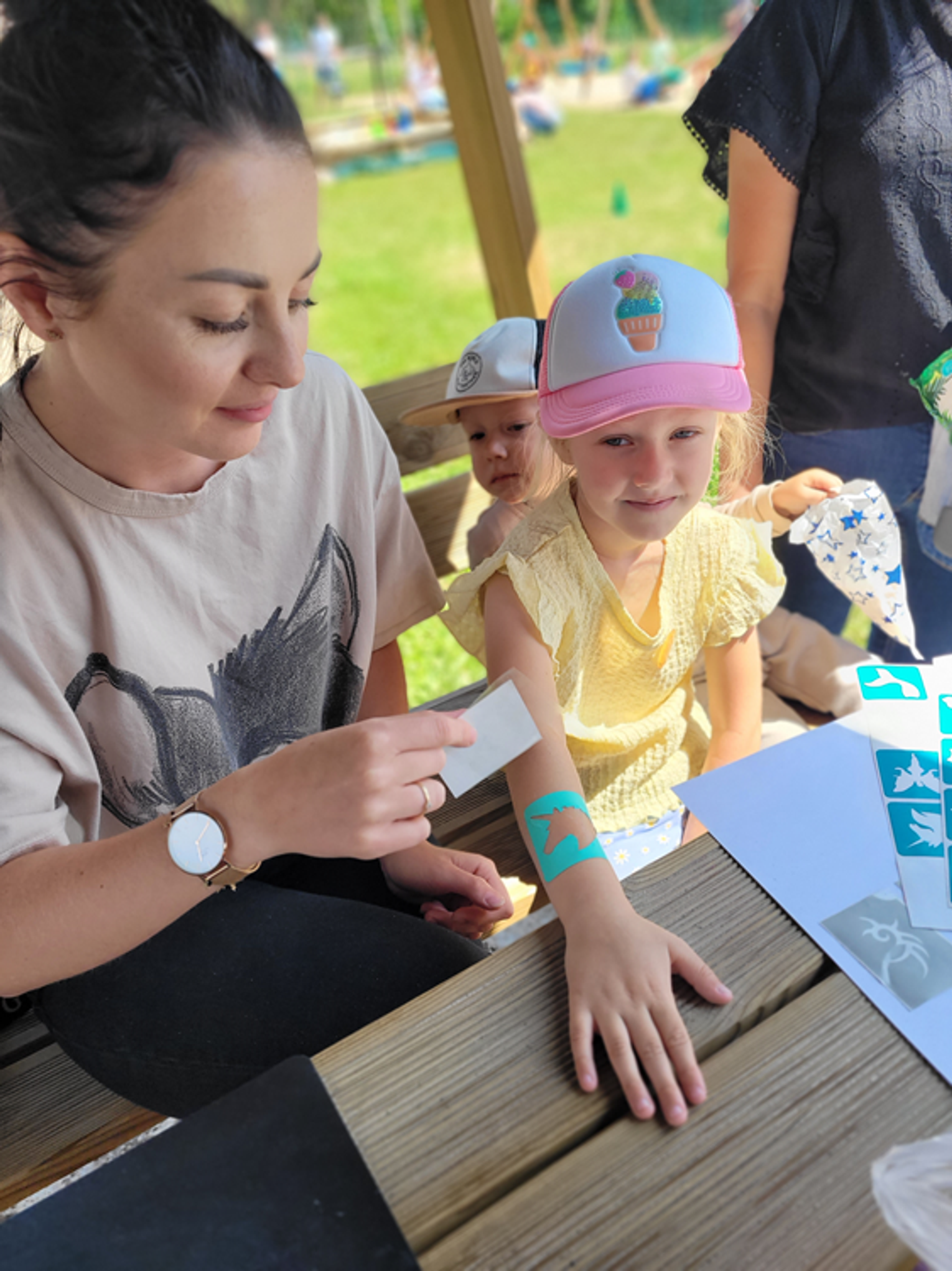 Po części artystycznej zarówno na dzieci, jak i dorosłych czekało wiele atrakcji: loteria fantowa, kącik plastyczny, konkurencje sportowe, mega-bańki, kolorowe warkoczyki, brokatowe tatuaże oraz malowanie twarzy.