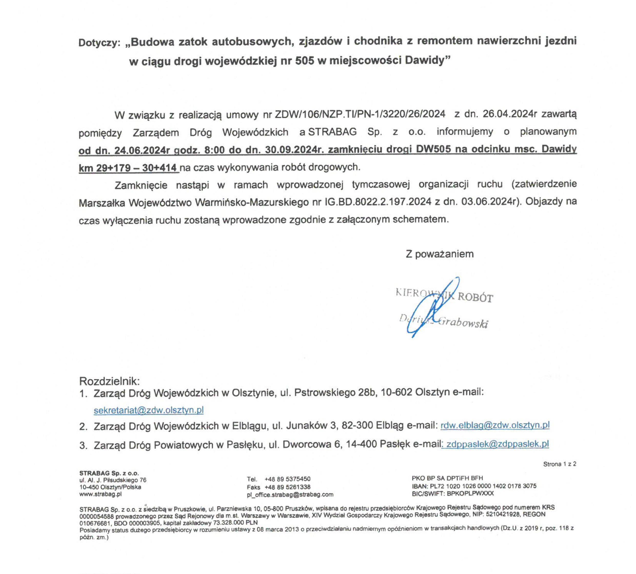 Uwaga! Czasowe zamknięcie drogi wojewódzkiej nr 505.