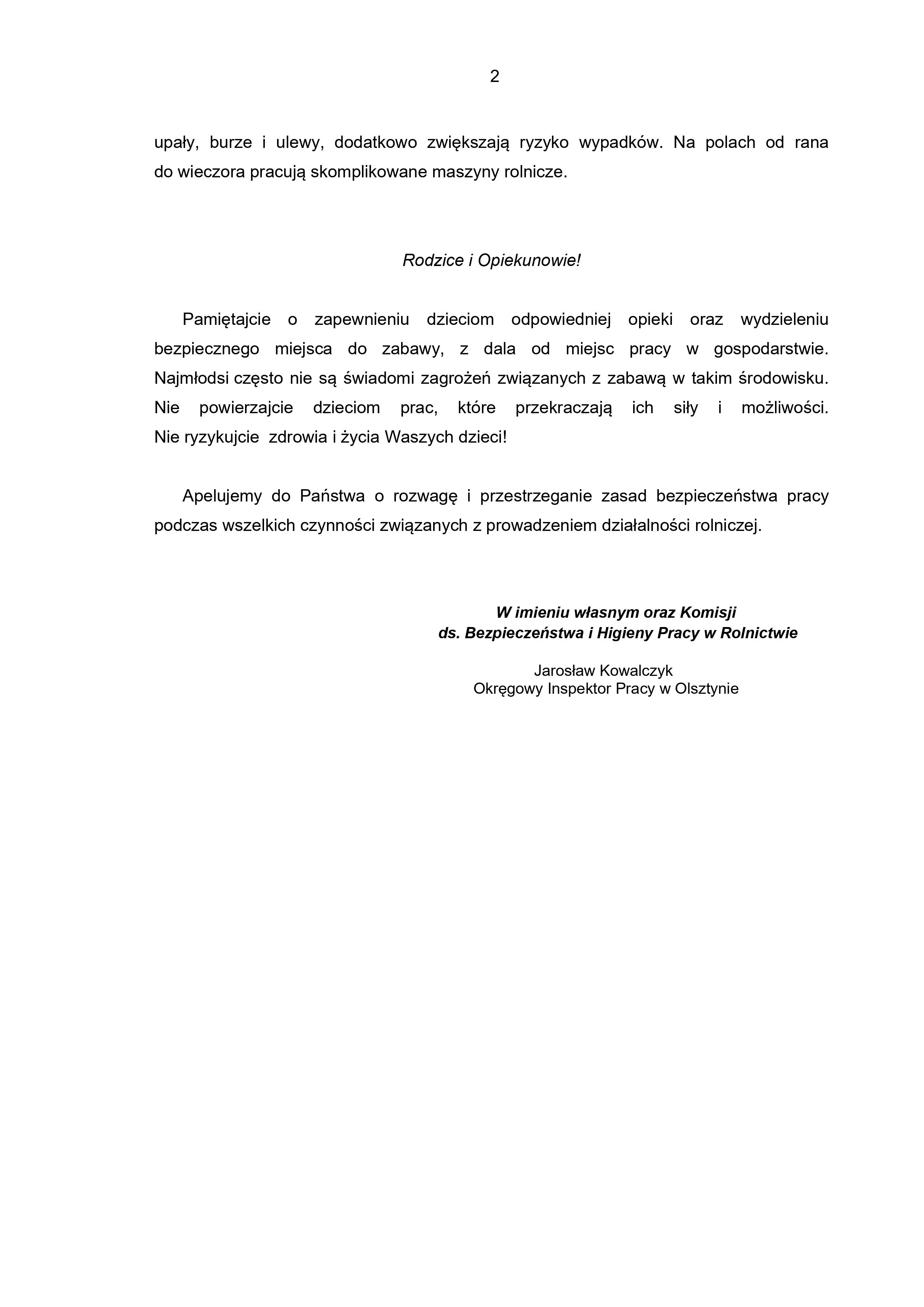 List do Rolników, Rodziców i Opiekunów Dzieci przebywających na obszarach wiejskich