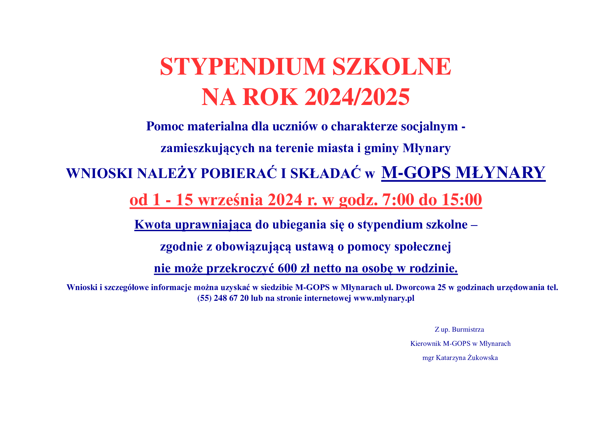 TERMIN SKŁADANIA WNIOSKÓW O STYPENDIUM SZKOLNE