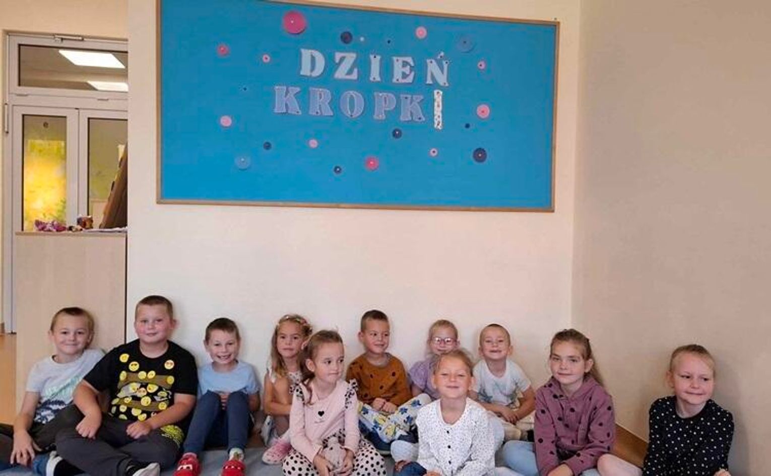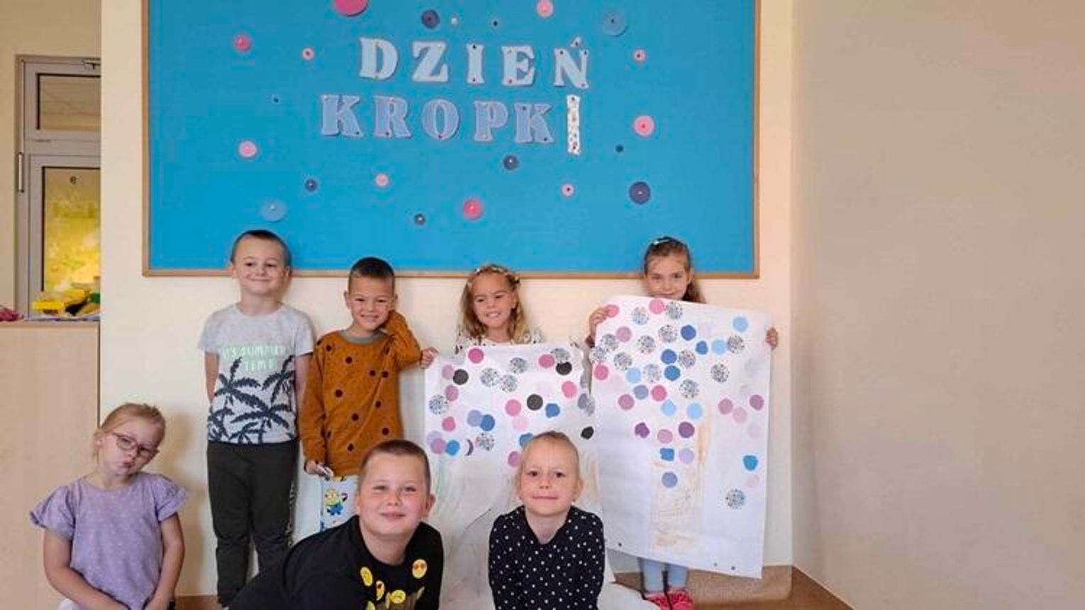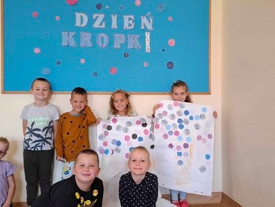 Wspólnie w grupie stworzyliśmy plakat „Kropkowe drzewo”. Dostrzegaliśmy również, że świat składa się z kropek małych i dużych. Kropki gościły w zabawach ruchowych, plastycznych i matematycznych. Przedszkolaki wykonały kompozycje z kółek różnej wielkości i koloru rozwijając przy tym swoje twórcze myślenie i kreatywność. Na zakończenie każde dziecko otrzymało order uśmiechniętej kropki oraz wykonało zdjęcie w kropkowej fotobudce.